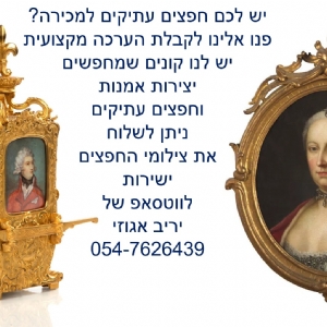 יש ברשותכם חפצי אמנות ועתיקות שברצונכם למכור? יריב אגוזי 054-7626439