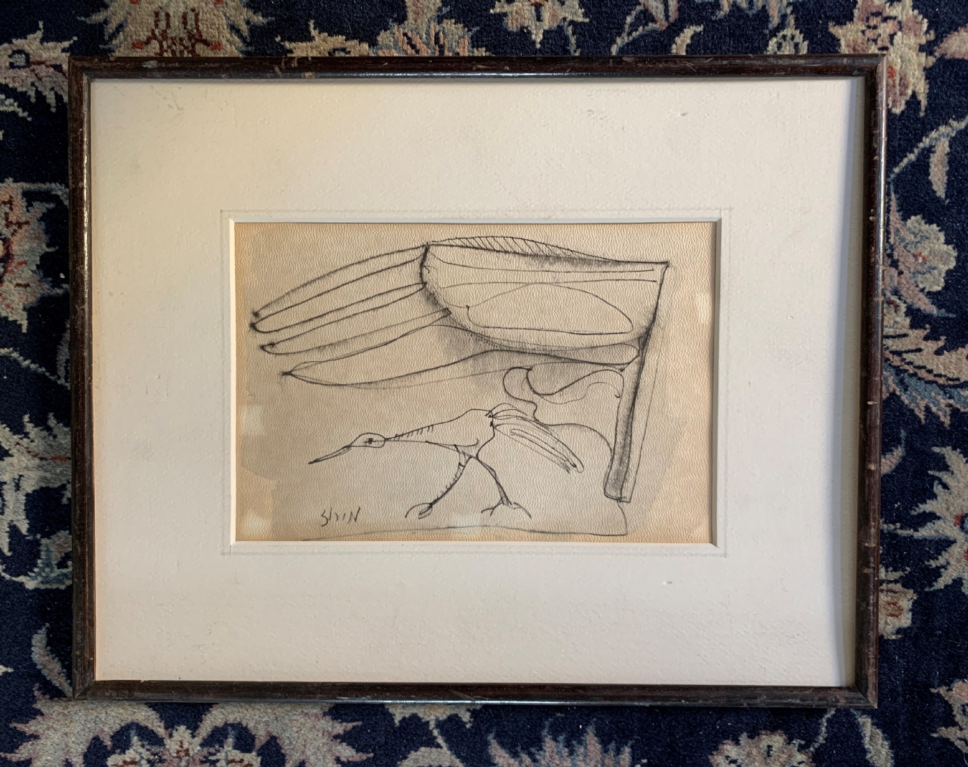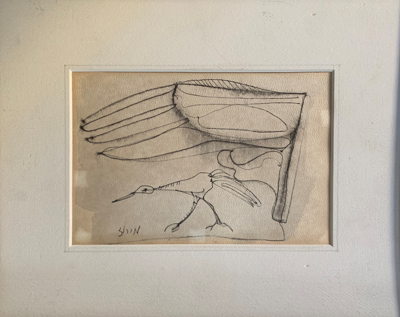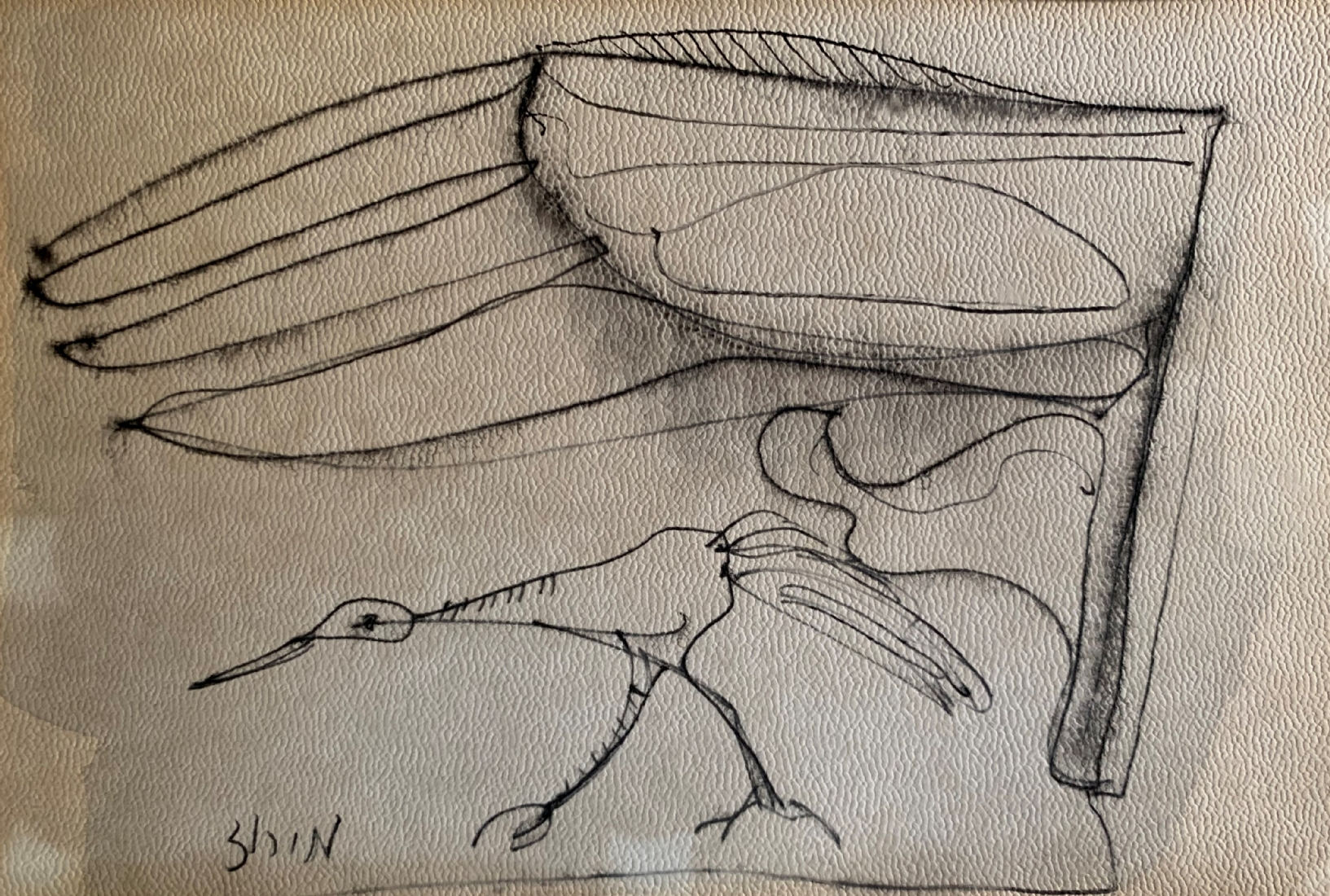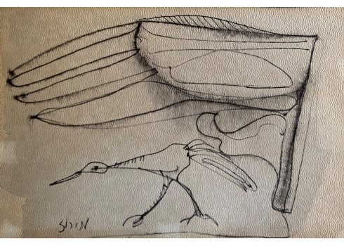 חיים מירוז - 'ציפור הנפש', רישום עט על נייר, חתום