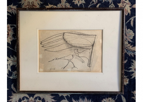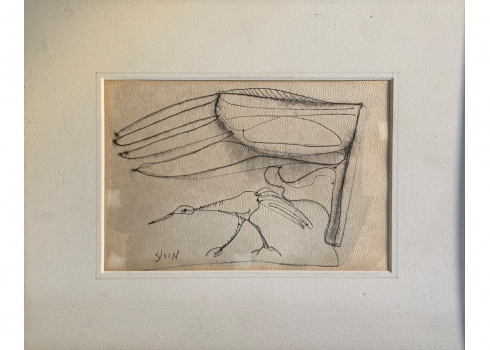 חיים מירוז - 'ציפור הנפש', רישום עט על נייר, חתום, מידות: 16X24 ס"מ.