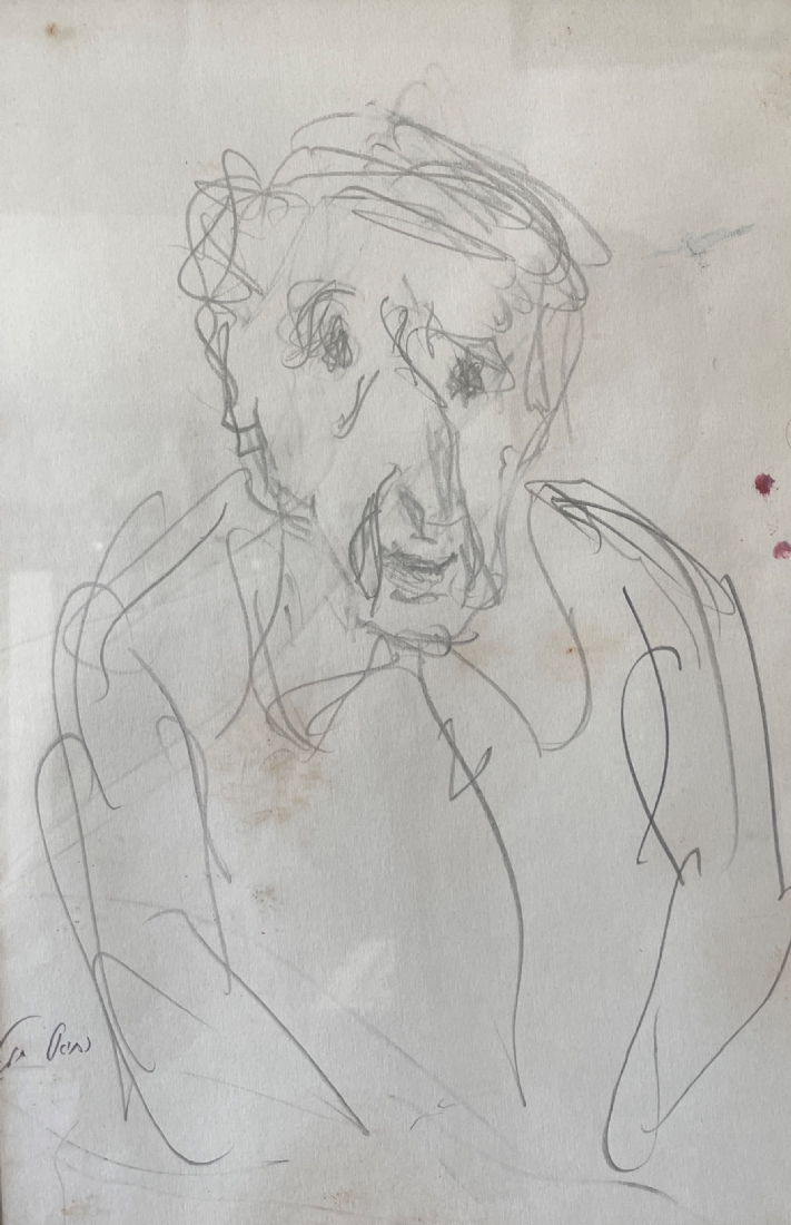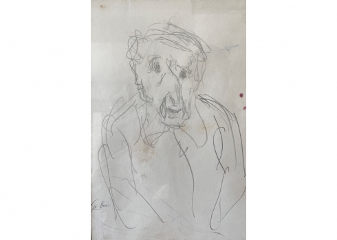יחיאל סגל (Yehiel Segal) - 'פורטרט עצמי של האמן', רישום עיפרון על נייר