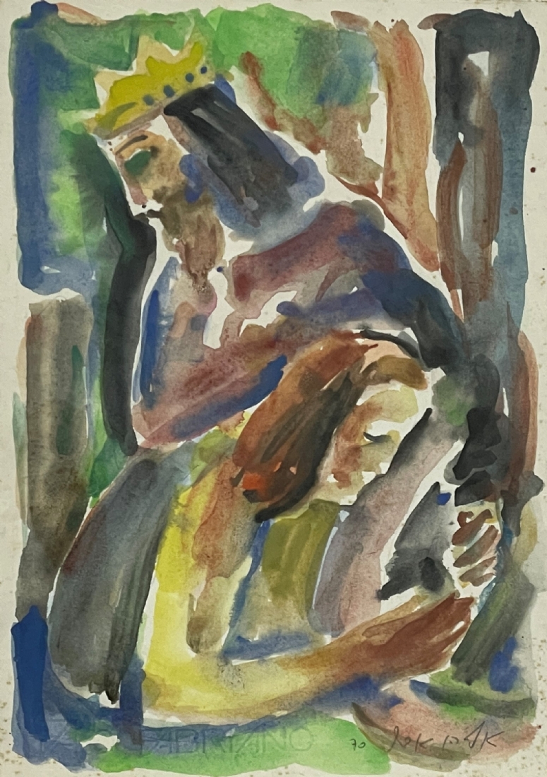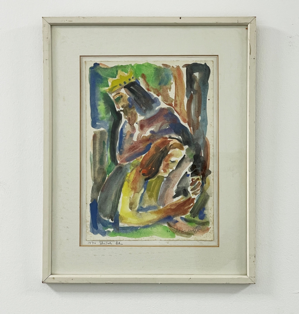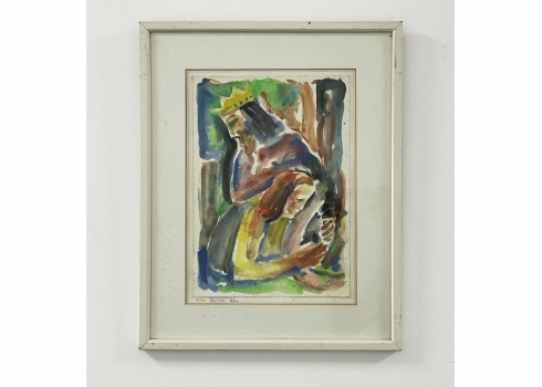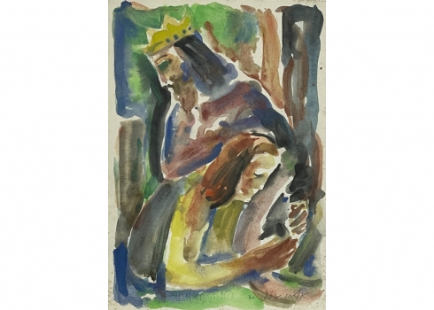 אליהו אדלר (Eliahu Adler) - 'דוד המלך ובת שבע' - ציור ישן, אקוורל על נייר, חתום ומתוארך: 1970, מידות: 34.5X24.5 ס"מ.