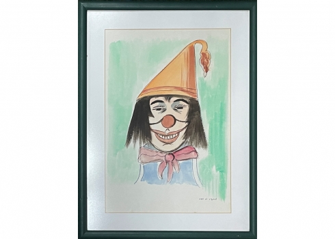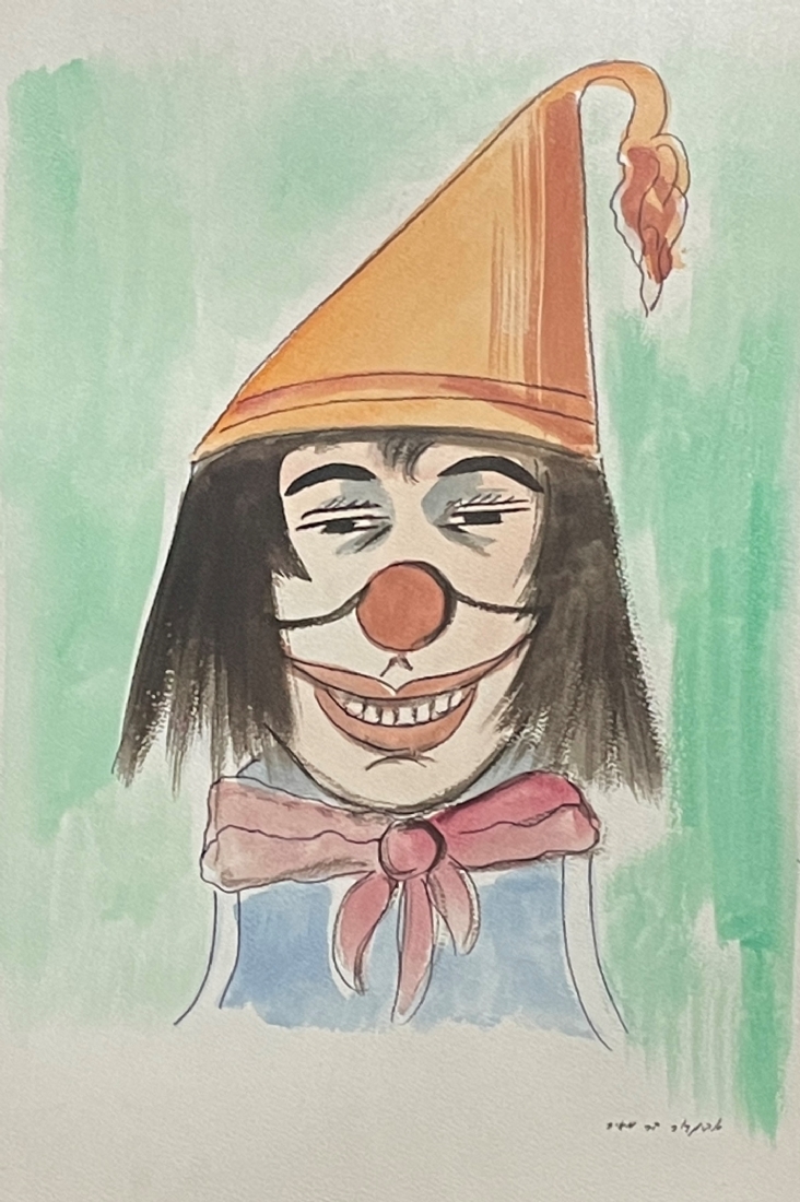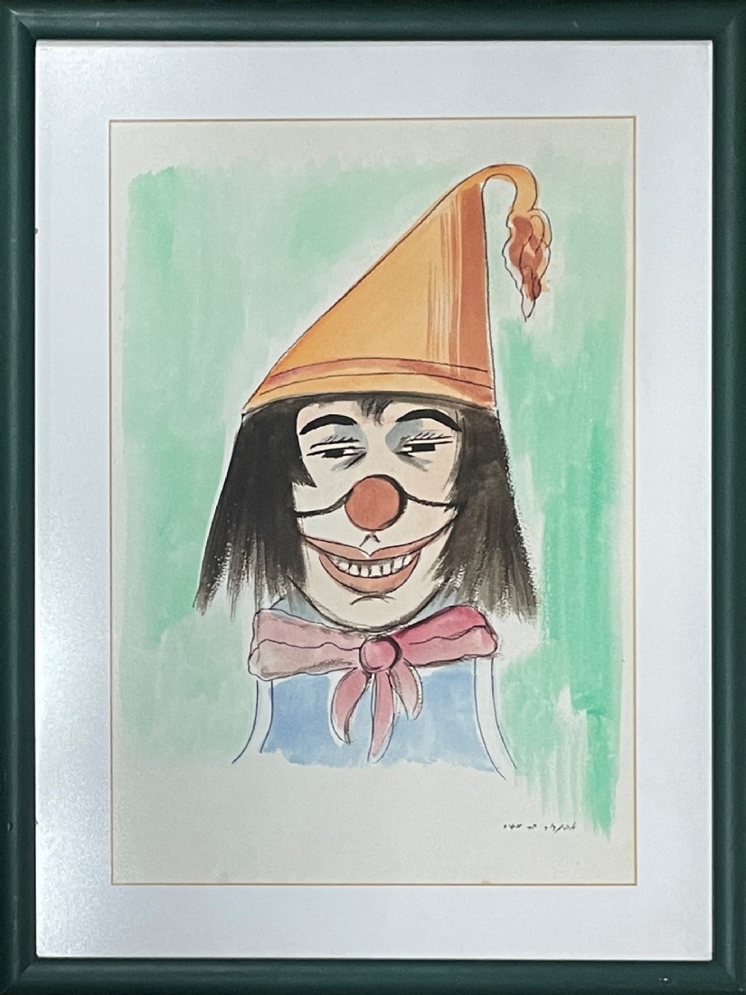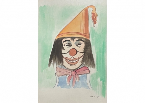 אביגדור בר מאיר - 'ליצן', אקוורל על נייר, חתום