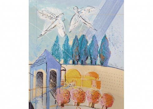 קלמן שמי, (Calman Shemi) - ליטוגרפיה יפה על קרטון, חתומה בעיפרון וממוספרת 48/100, מידות: 60/53 ס"מ.