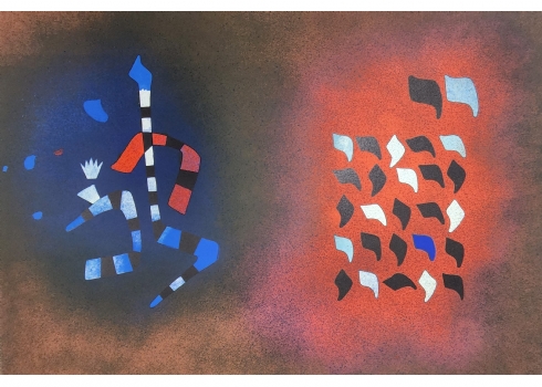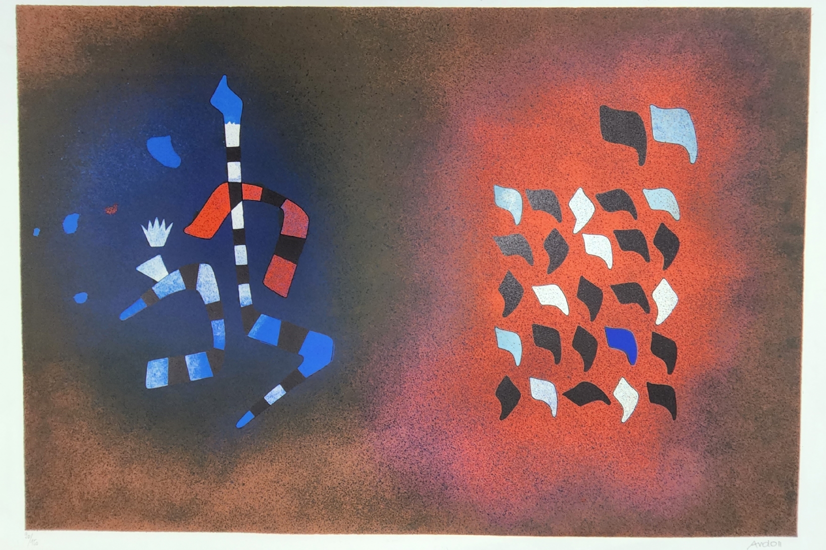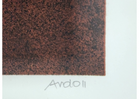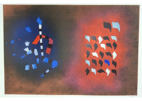 מרדכי ארדון (Mordecai Ardon) - 'בריאת העולם 7', ליטוגרפיה ישנה, חלק מסדרת "בריאת העולם" שיצר האמן בשנת 1971, חתומה בעיפרון וממוספרת 90/150, ללא מסגרת, מידות: 60X90 ס"מ.