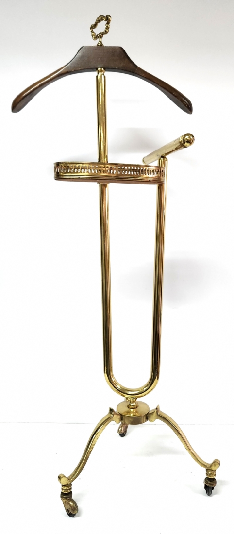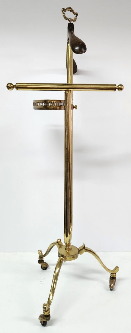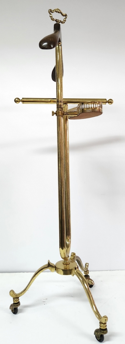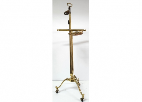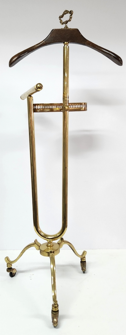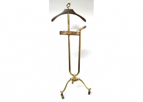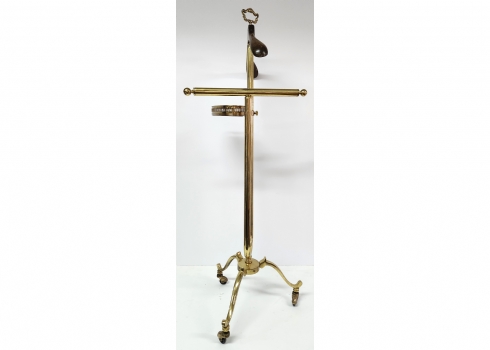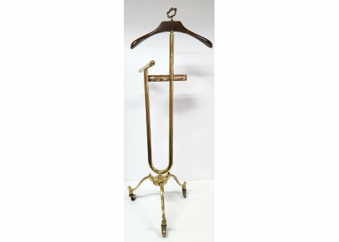 מתלה בגדים איכותי ויפה במיוחד עשוי עץ ופליז, רוחב: 60 ס"מ, גובה: 117 ס"מ.