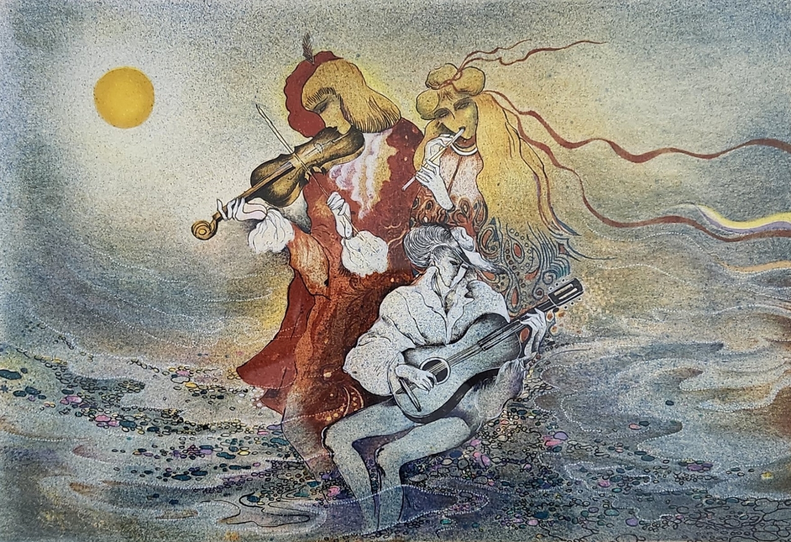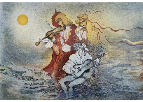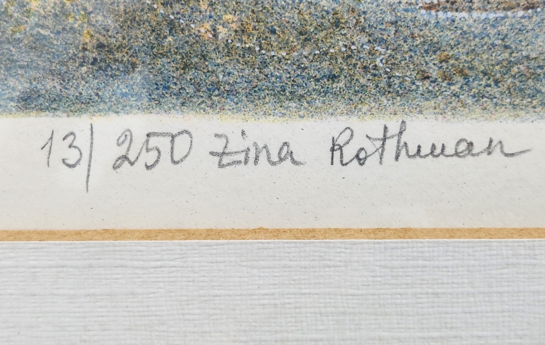 רוטמן, זינה (Zina Rothman) - 'קונצרט מיימי' - ליטוגרפיה ישנה, חתומה בעיפרון, ממוספרת: 13/250, מידות: 35X50 ס"מ, מידות המסגרת: 53X67 ס"מ.