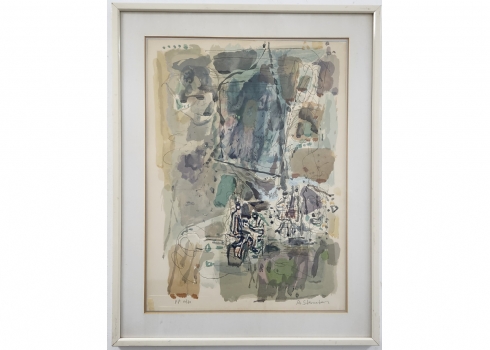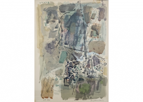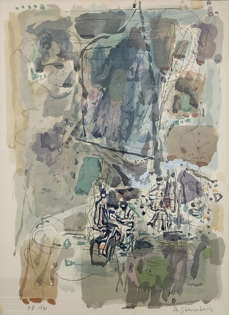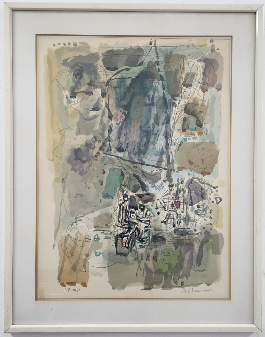אביגדור סטימצקי (Avigdor Stematsky) - 'דמויות בבית קפה חיפאי' - ליטוגרפיה גדולה