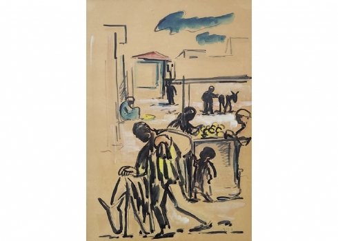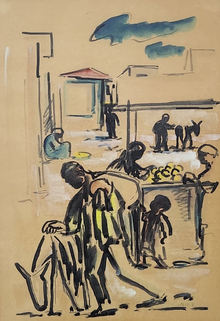 דוד הנדלר (David Hendler) - 'שוק', ציור ישן