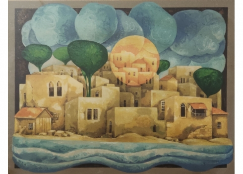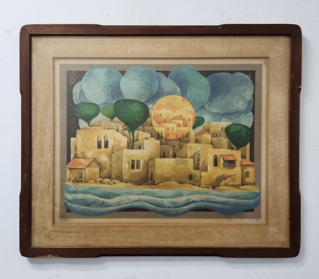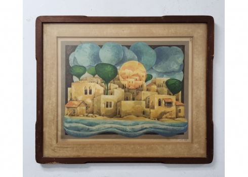 יעקב חייט (Yaakov Chayat) - 'יפו' - ליטוגרפיה חתומה בעיפרון, ממוספרת: 24/250, מידות: 40X50 ס"מ, מידות המסגרת: 54X64 ס"מ.