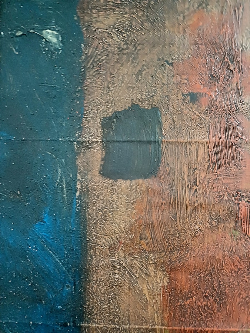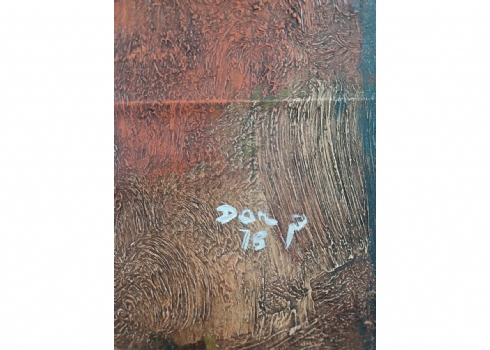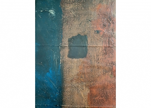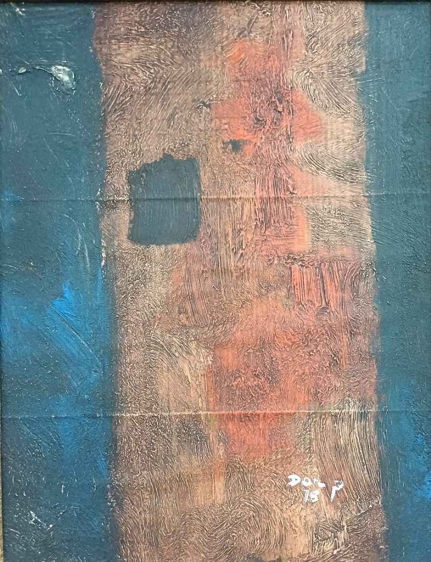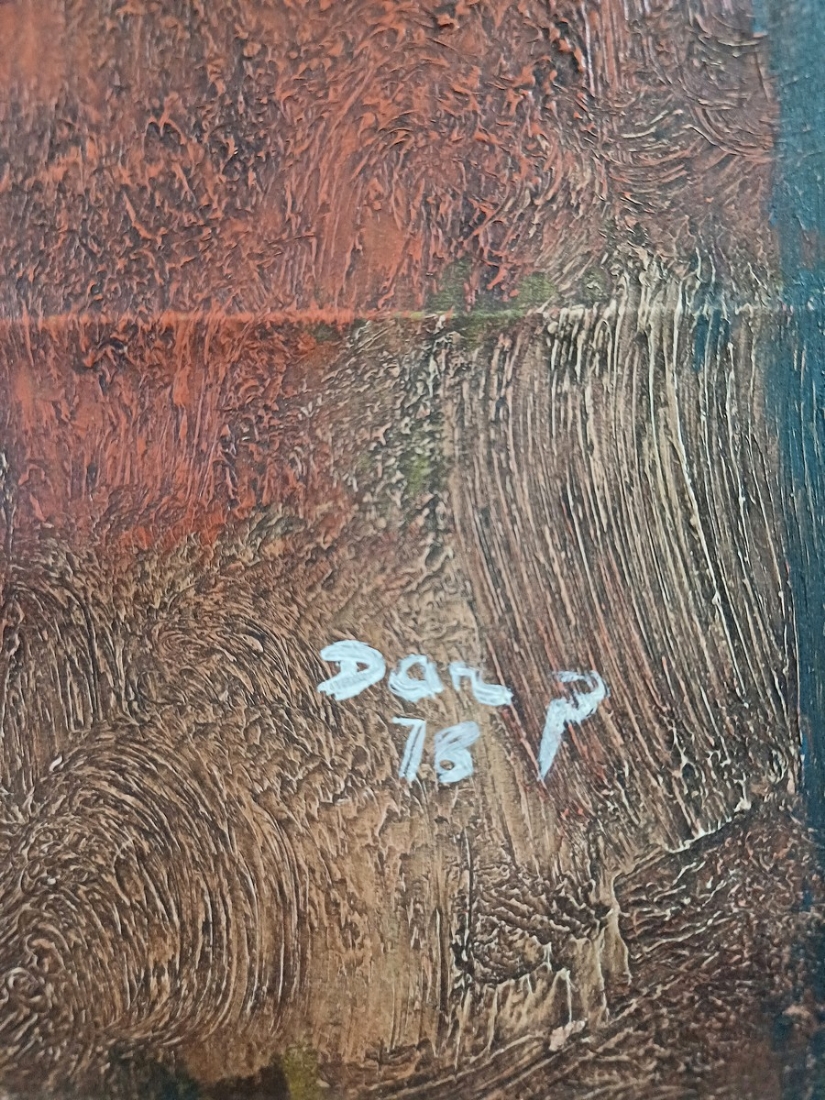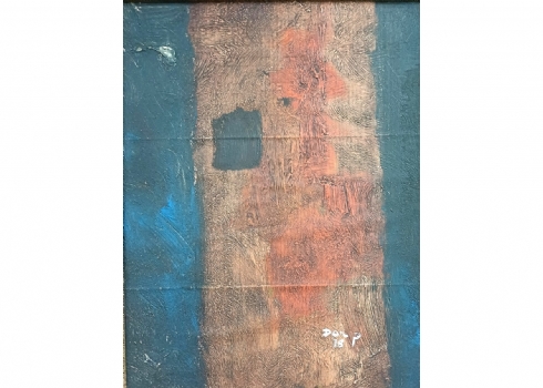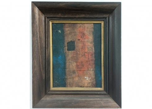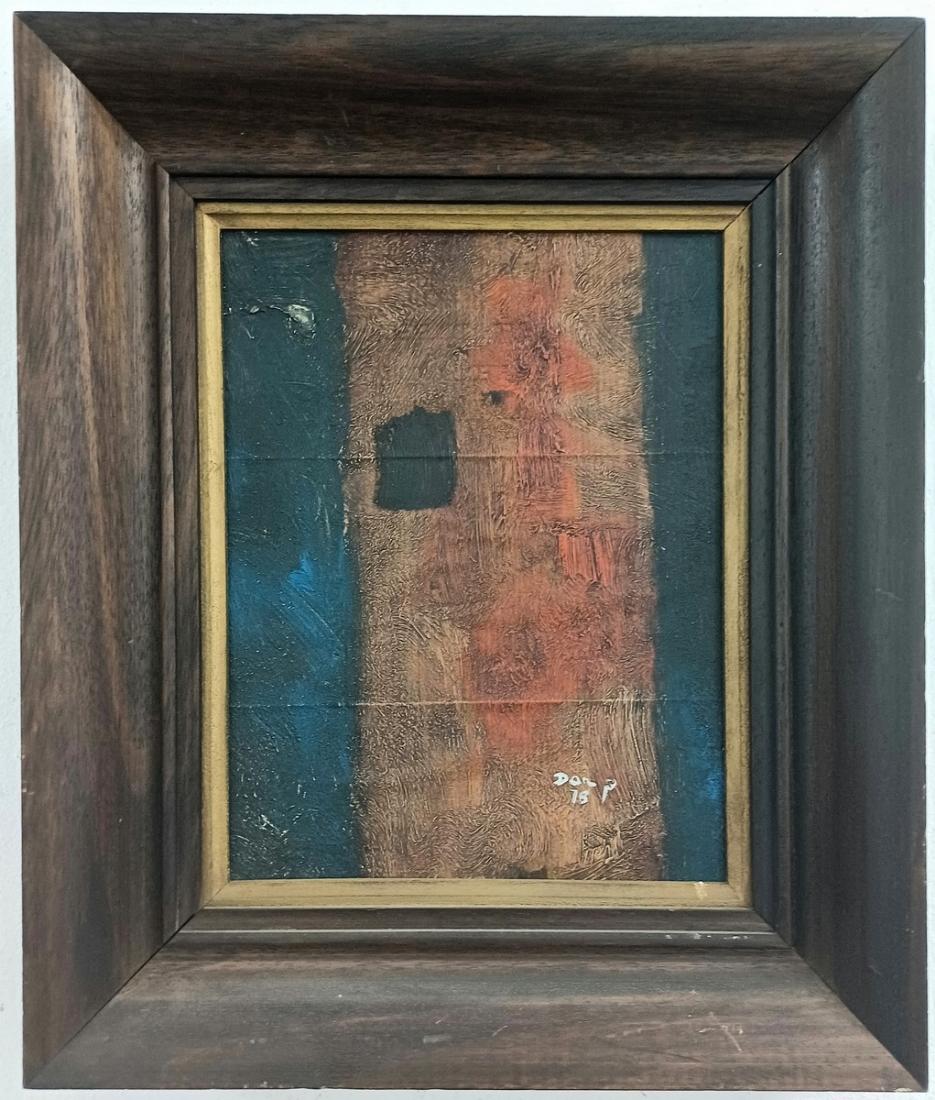דן לוין (ריכטר) - 'דמות כתומה וחלון שחור' - ציור שמן על נייר מוצמד ללוח