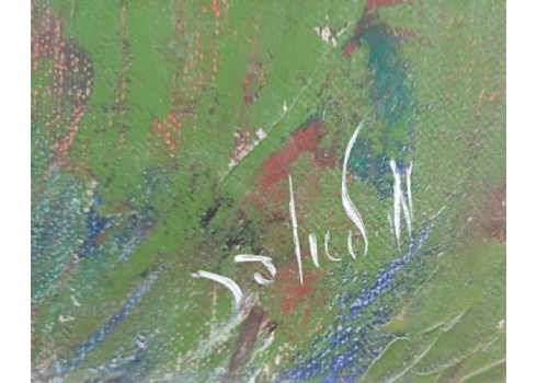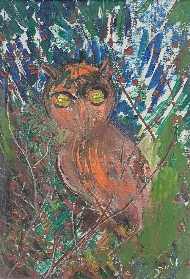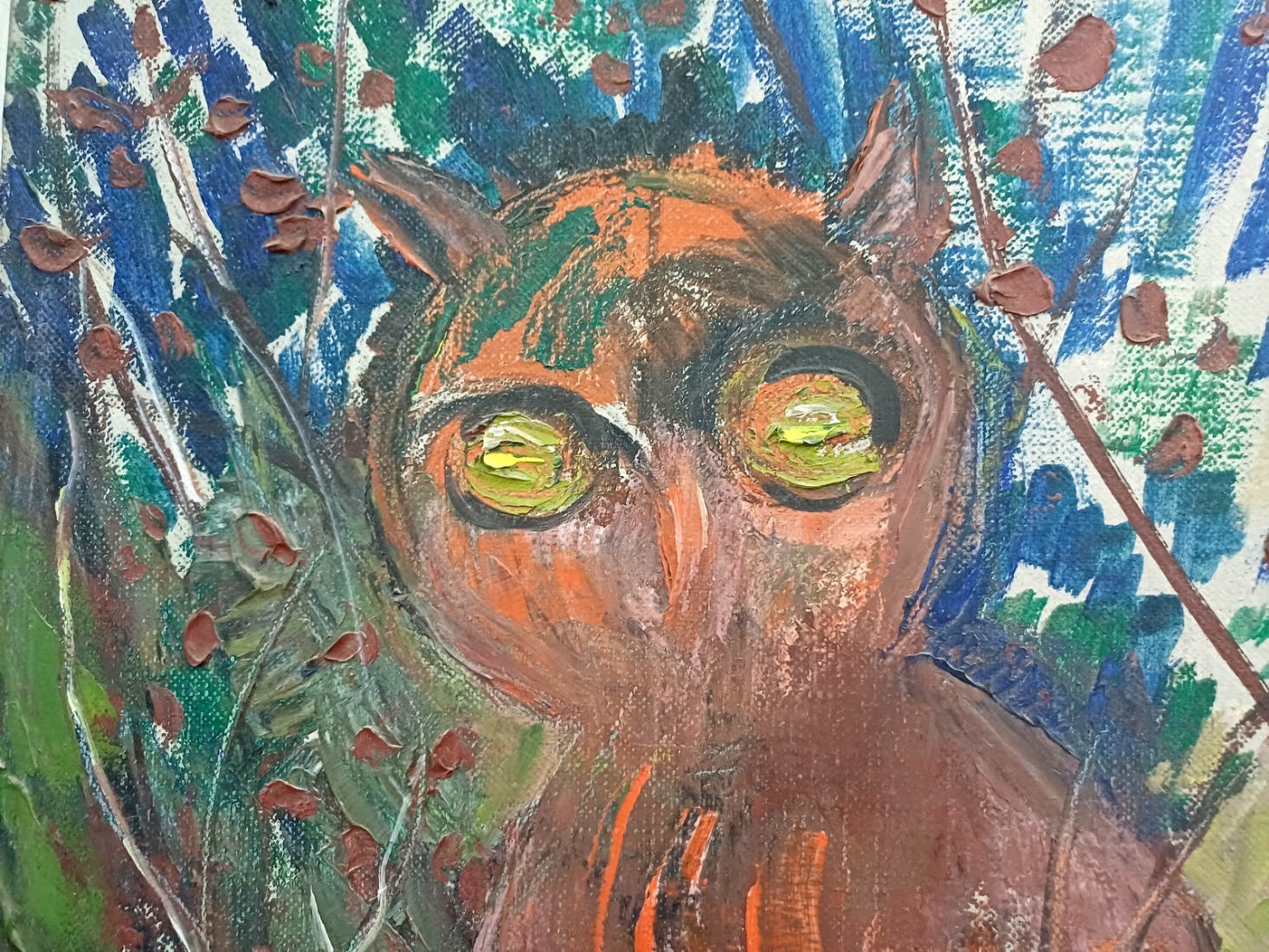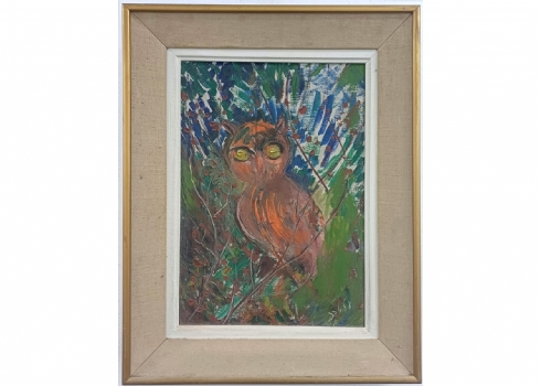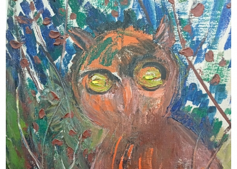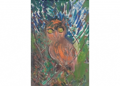 מיליה לאופר (Milia Laufer) - 'תנשמת אדומה' - ציור שמן על בד, חתום