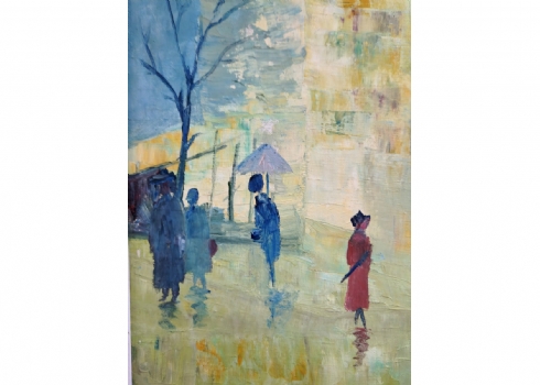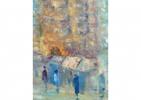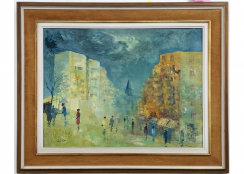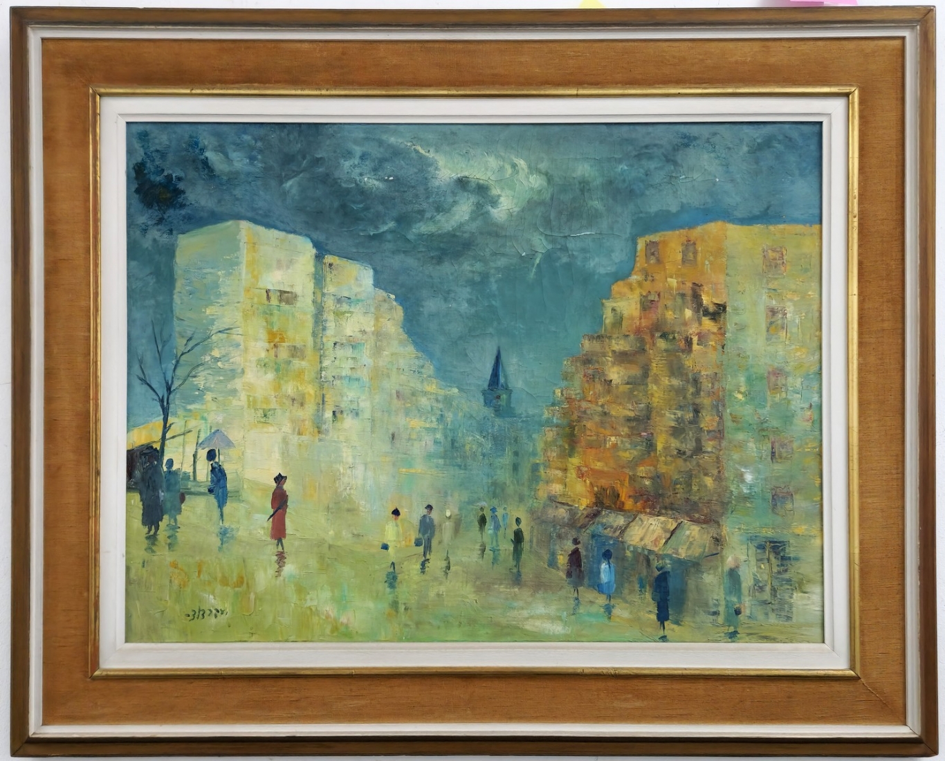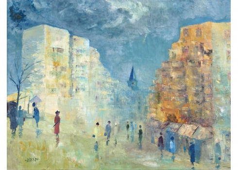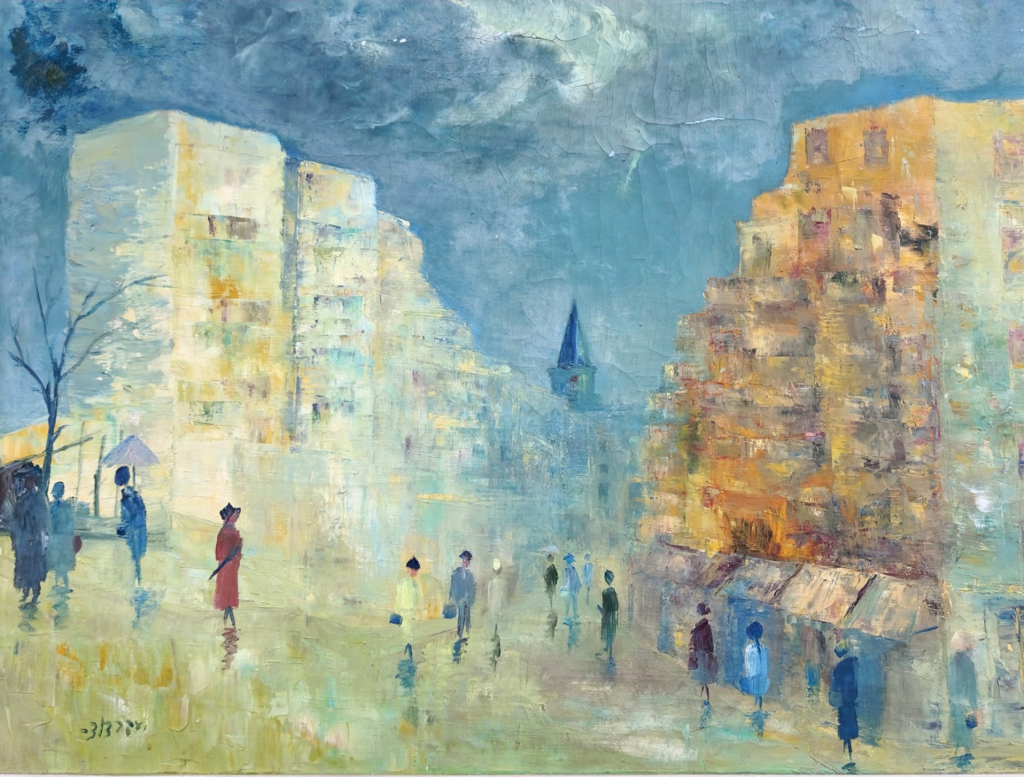 יעקב דוד 'צריח כחול', ציור גדול, שמן על בד, חתום