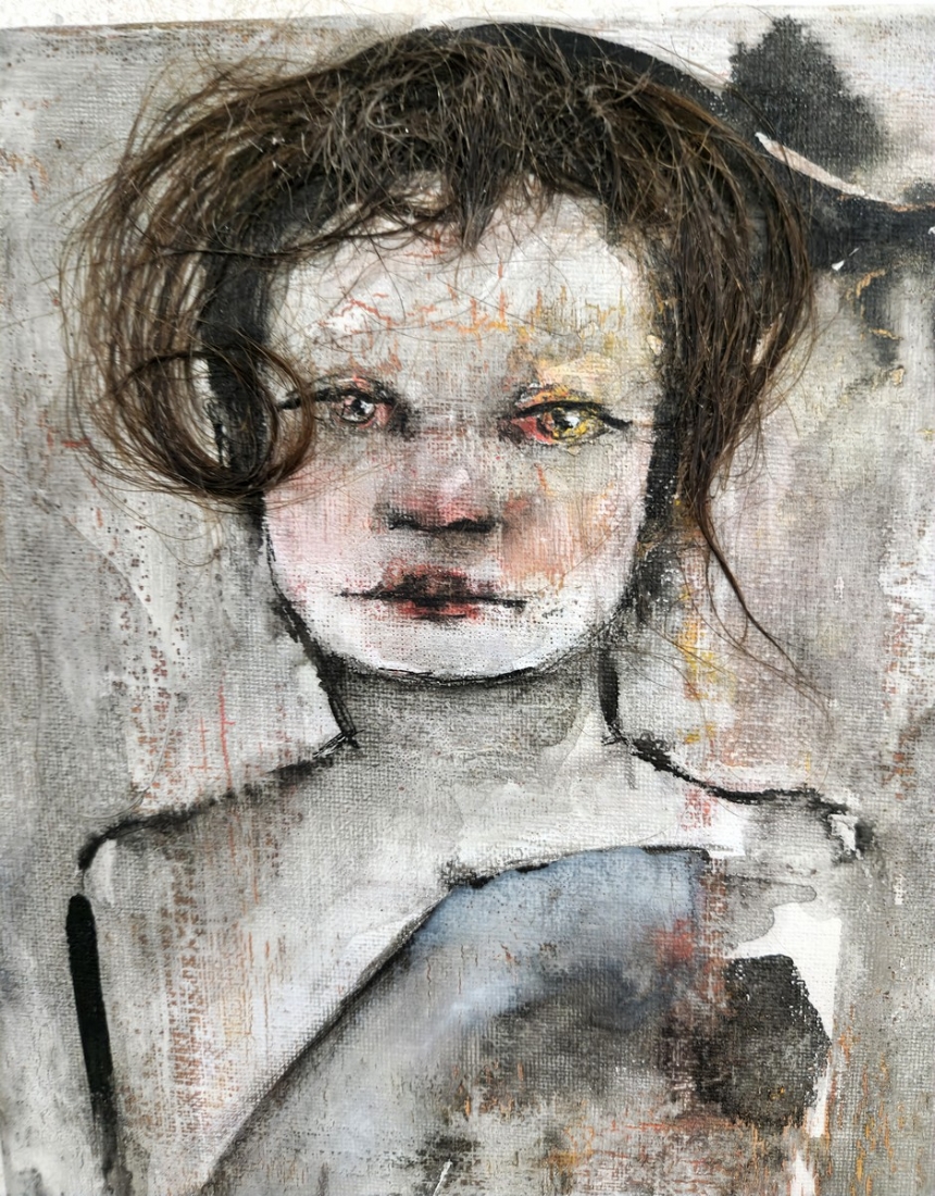 סמדר לומניץ (Smadar Lomnitz) - 'אפילו פני פונות פנימה' - טכניקה מעורבת על בד