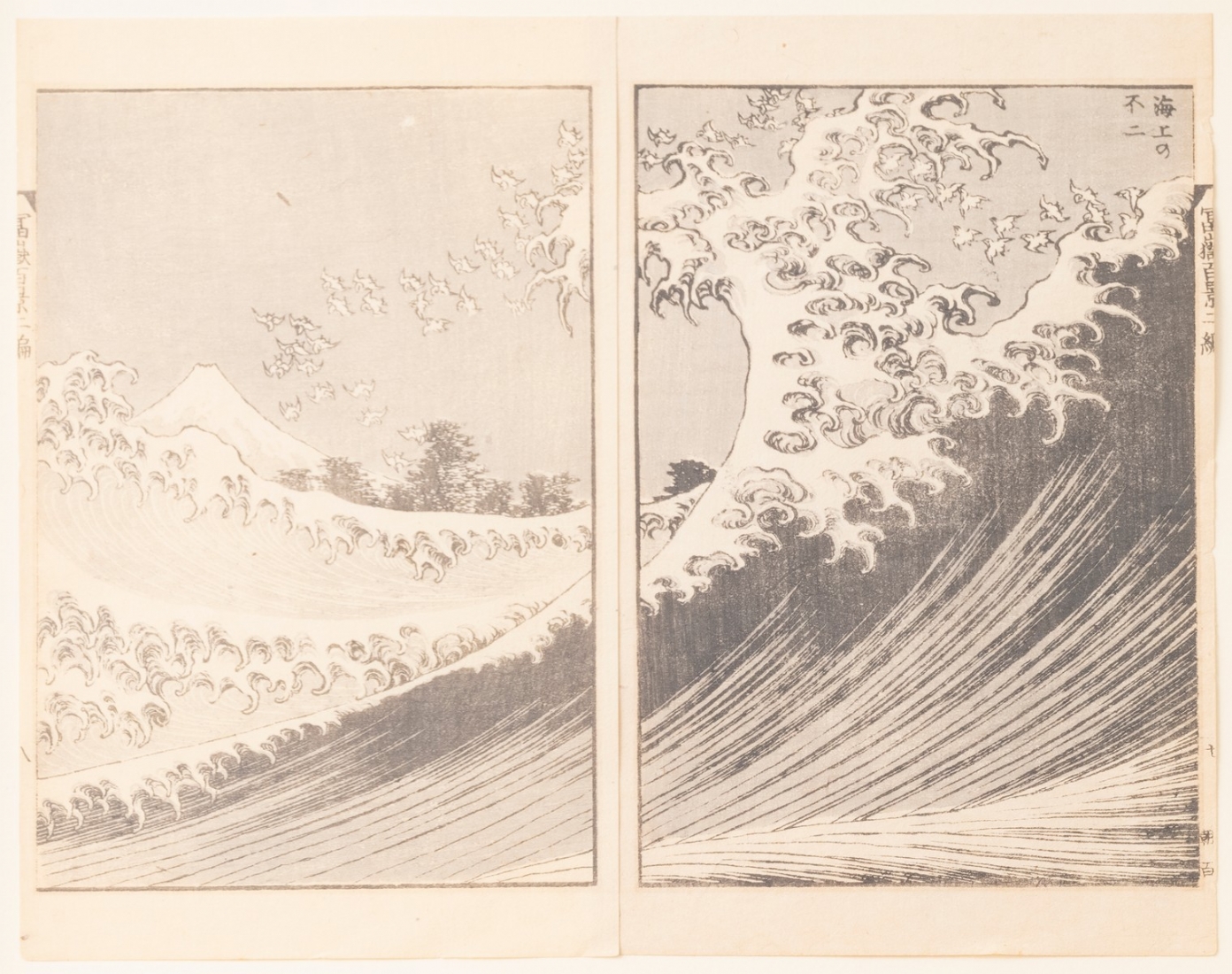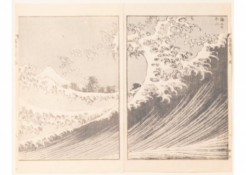 הגל הגדול (The Great Wave)- זוג עמודים מתוך הספר "Fufaku Kyakkei"