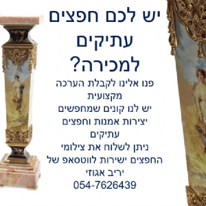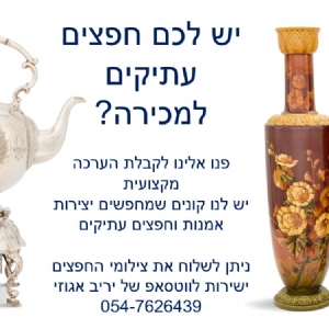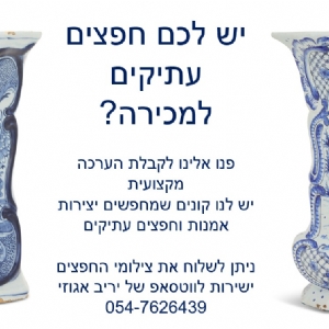 לייעוץ ללא עלות התקשרו עכשיו. מעריכים מוכרים וקונים אמנות ועתיקות תכול