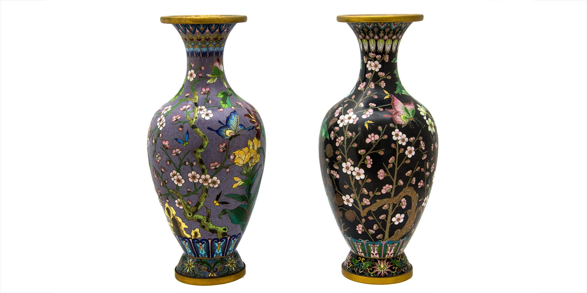זוג אגרטלי קלואזונה סינים ישנים, גובה: 38.5 ס"מ.