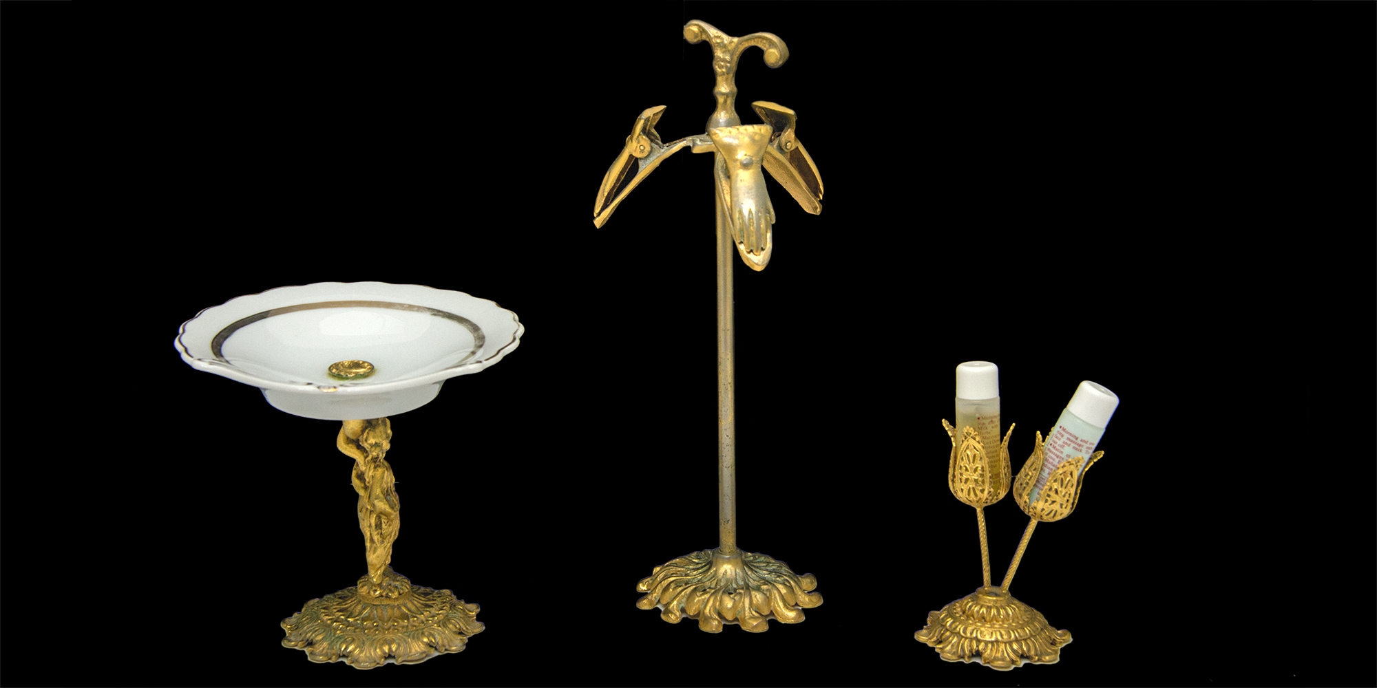 לוט של 3X פריטי נוי ופריטי טואלט. גובה מחזיק מגבות: 28 ס"מ.