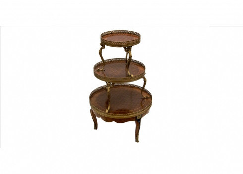 מעמד ישן בסגנון עתיק, עשוי עץ ומתכת, מעוטר בעבודת 'פרקטרי', גובה: 77 ס"מ.