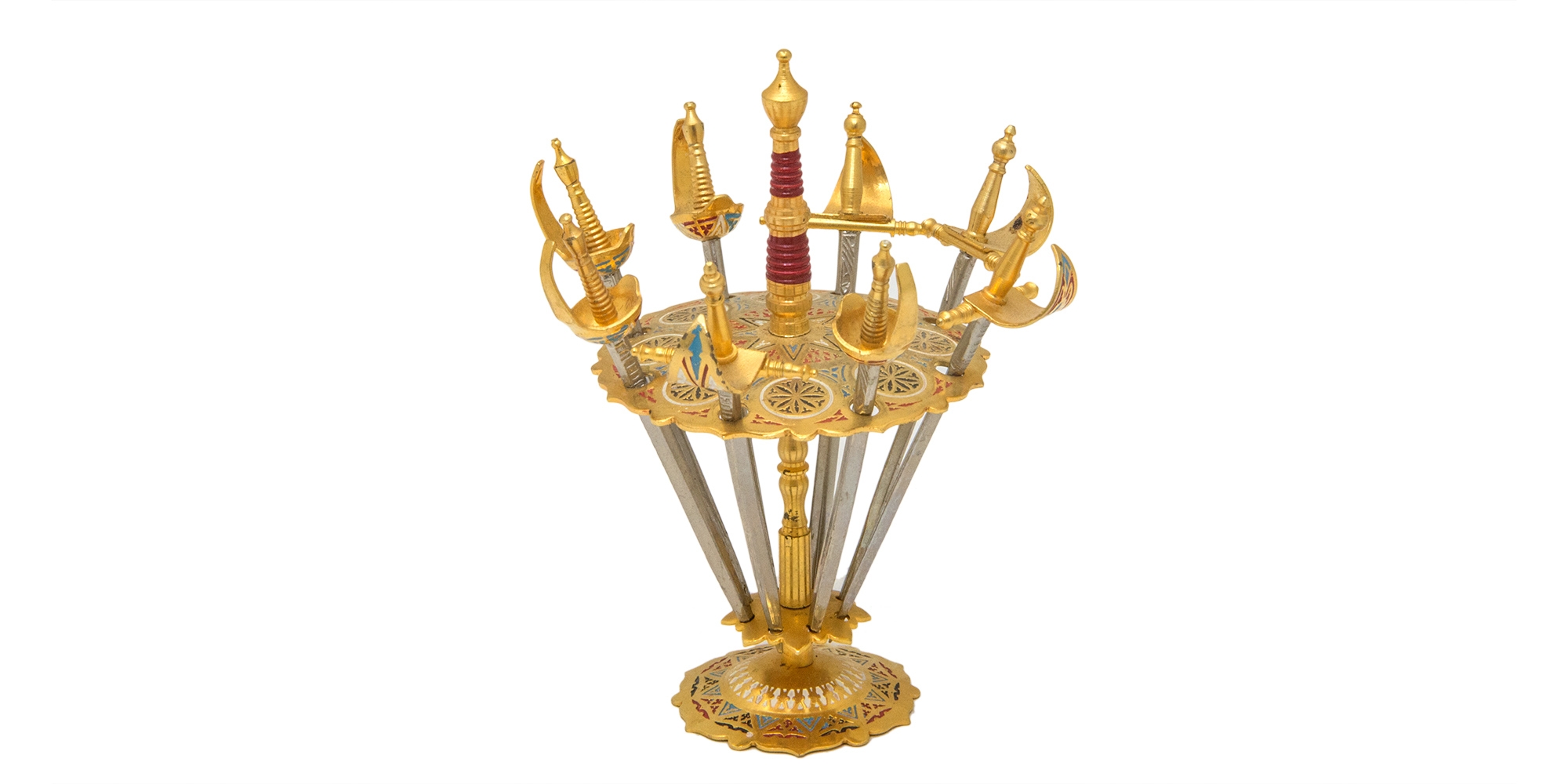 מתקן לשיפוד זיתים עשוי מתכת. גובה: 10 ס"מ.