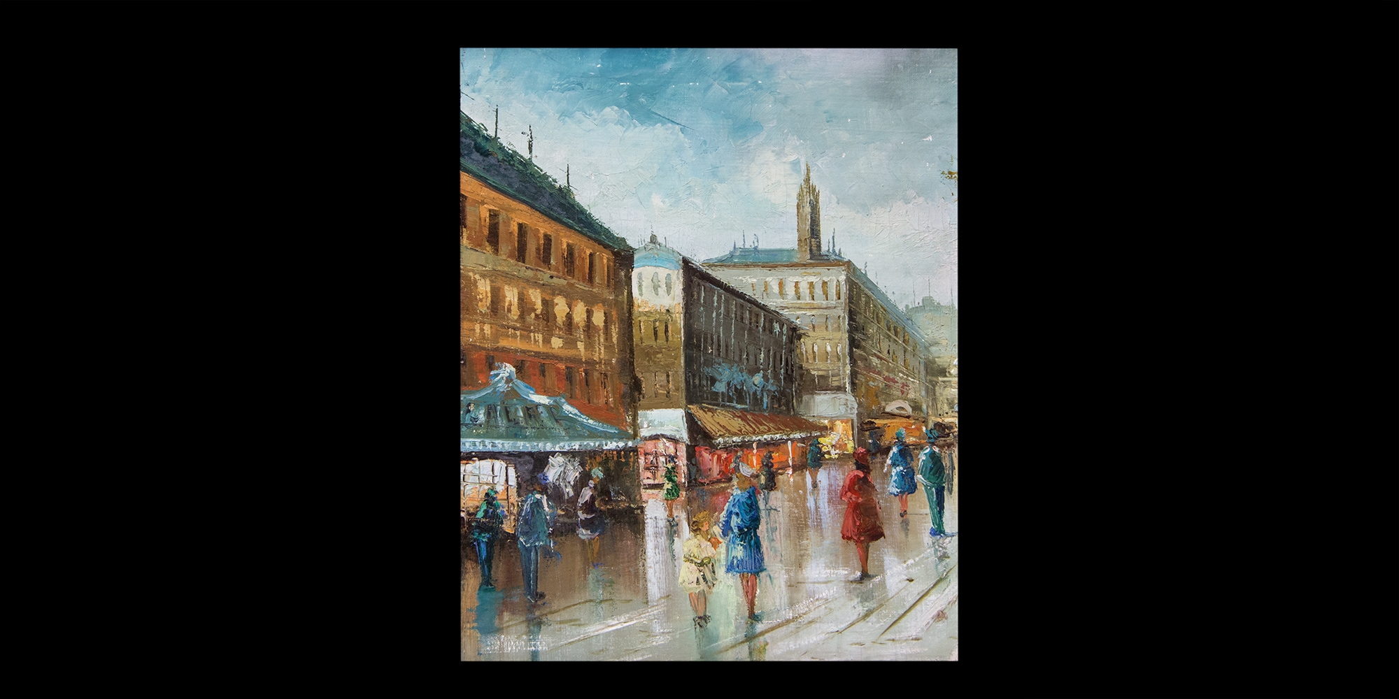 'רחוב אירופאי', שמן על בד, מידות: 60X48 ס"מ.