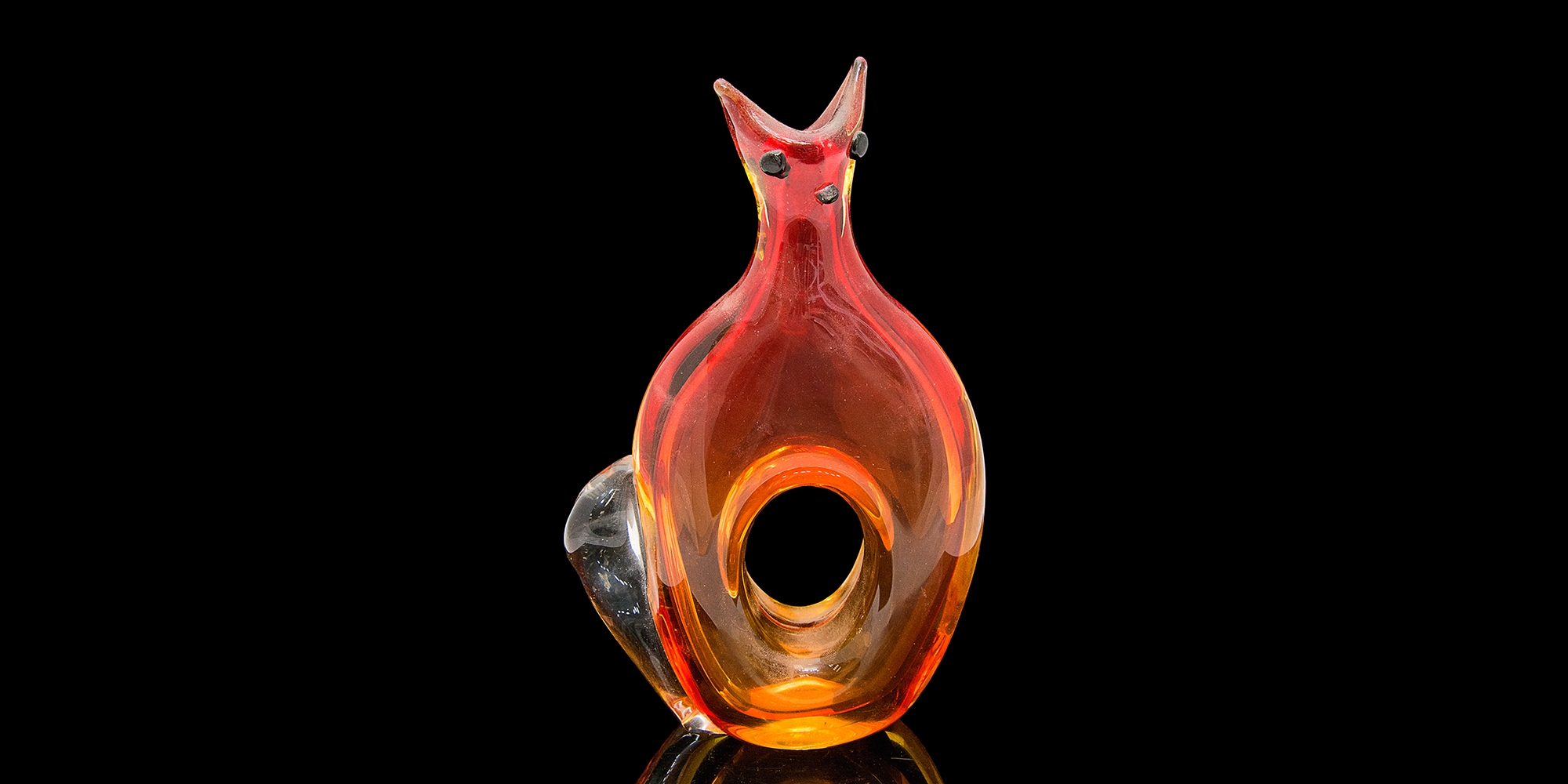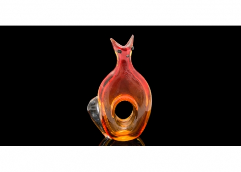 אגרטל זכוכית אמנותי ישן, מנופח ביד, מעוצב בדמות חתול, גובה: 28 ס"מ.