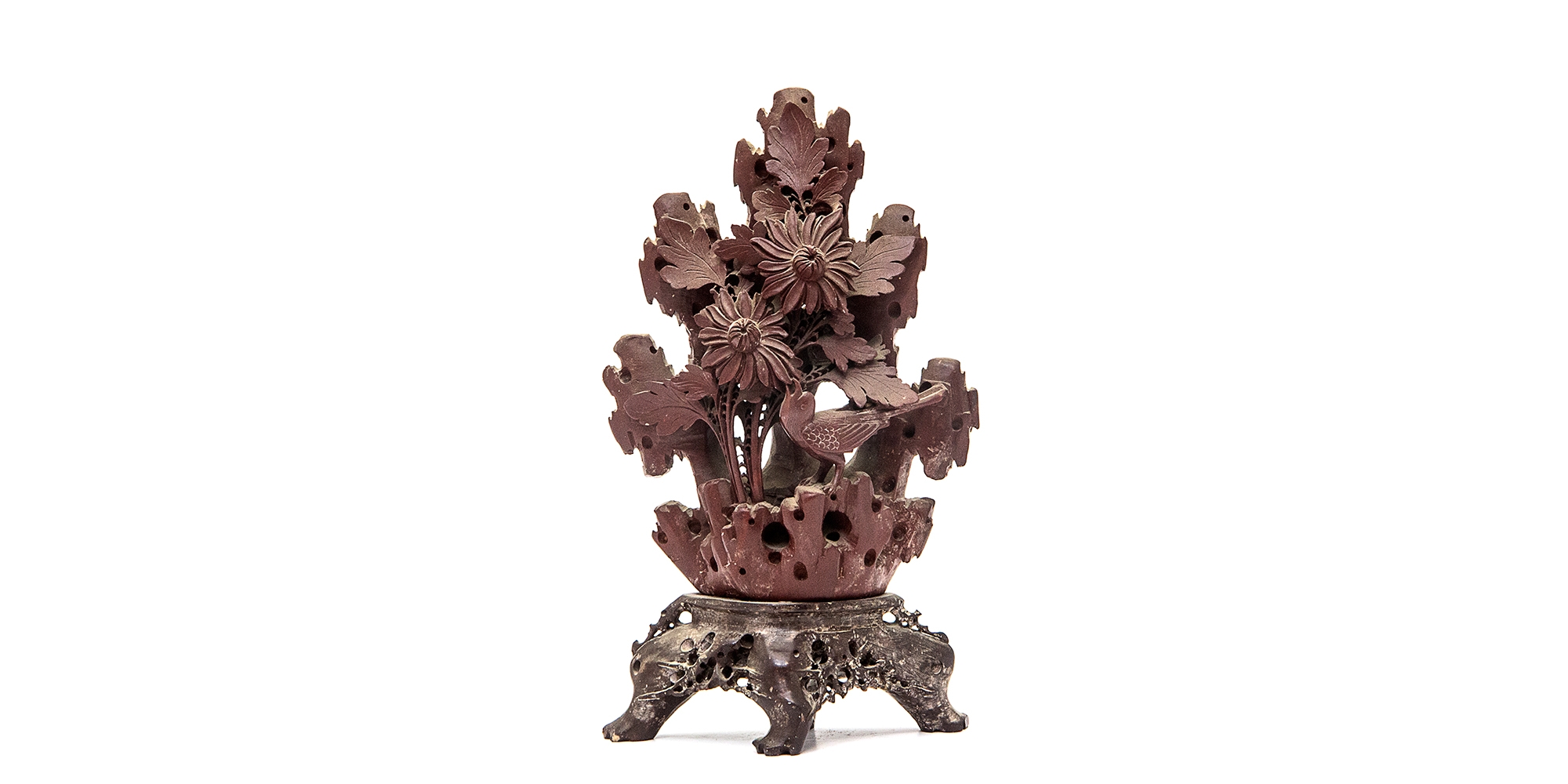 קישוט סיני ישן, עשוי אבן סבון (soap stone) מגולפת, גובה: 26 ס"מ.