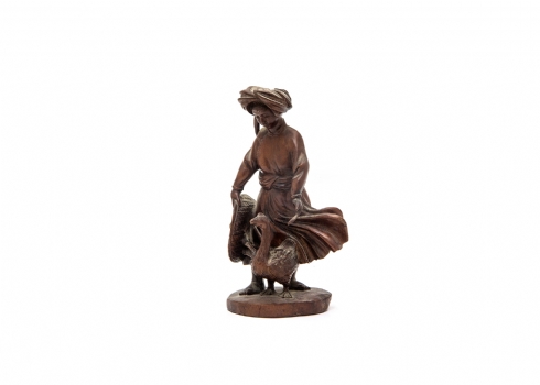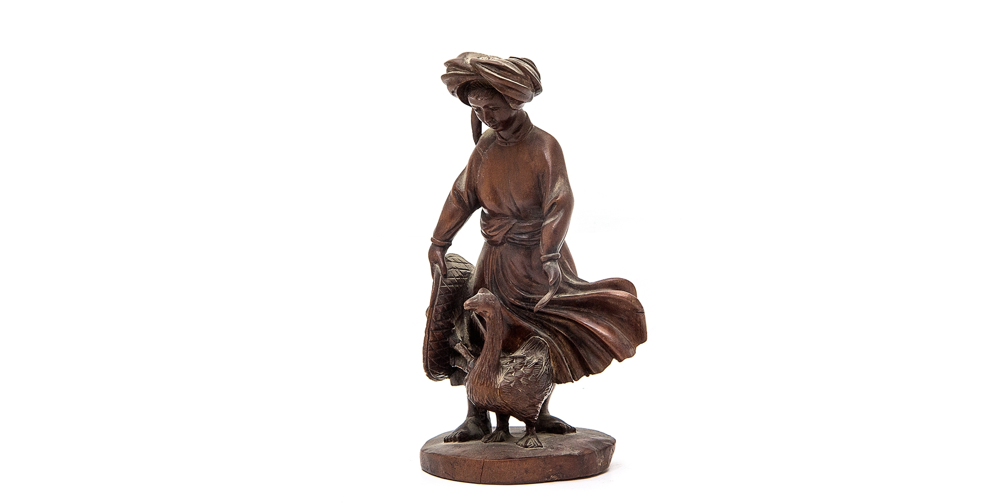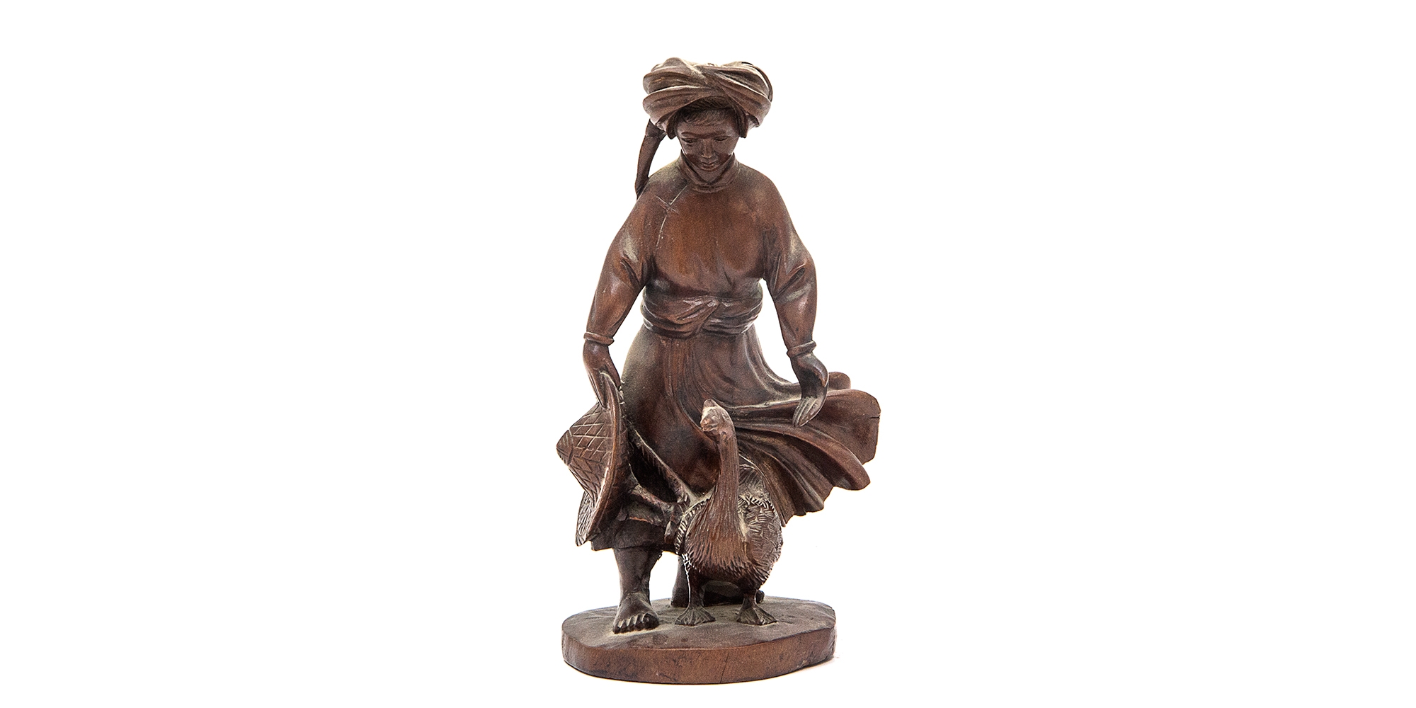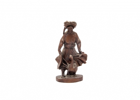 קישוט בורמזי ישן, עשוי עץ מגולף בעבודת יד, בדמות רועת אווזים, גובה: 20 ס"מ.