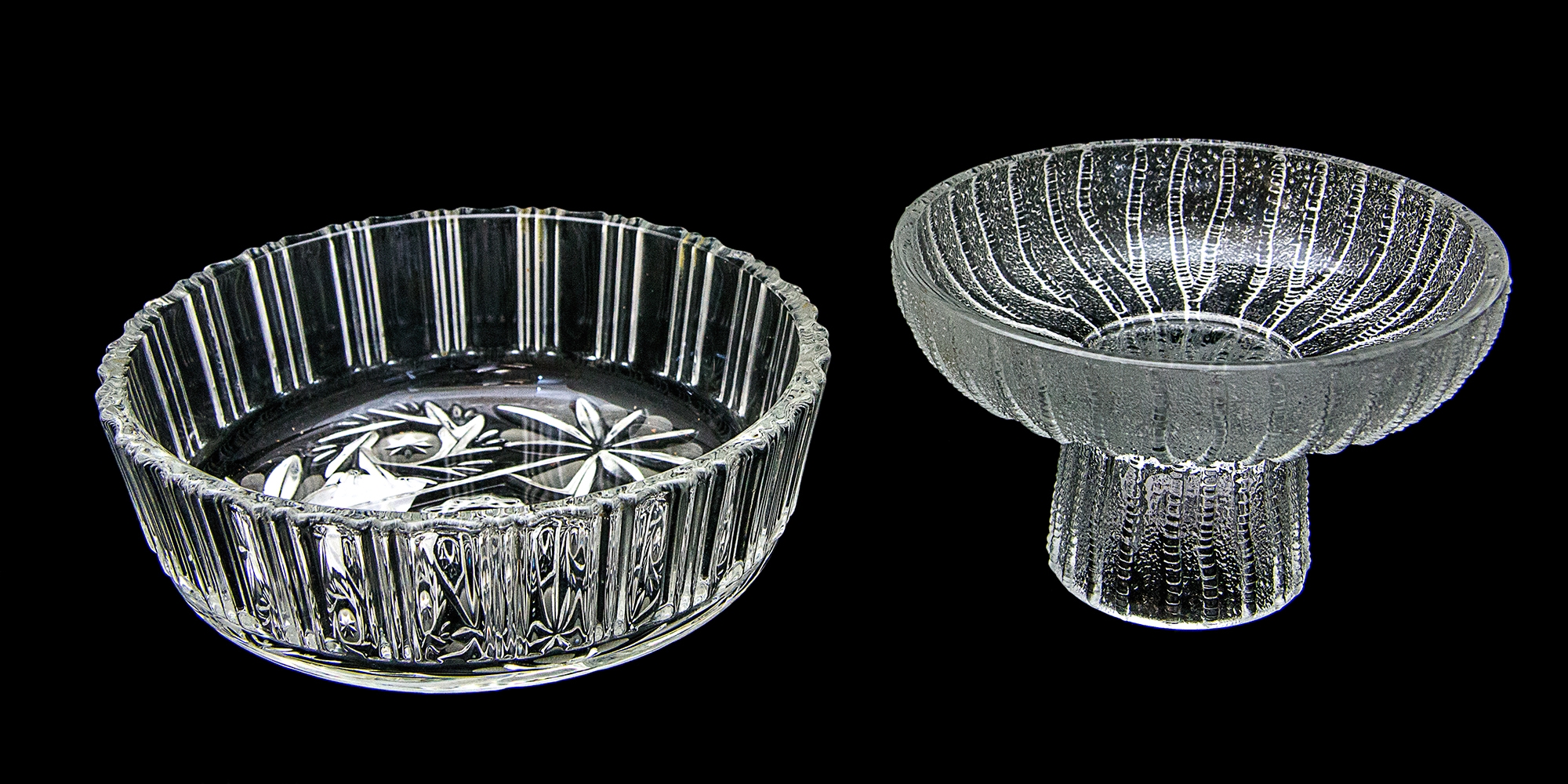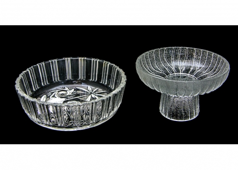 לוט של 2 כלי זכוכית ישנים, קוטר הקערה: 17 ס"מ.
