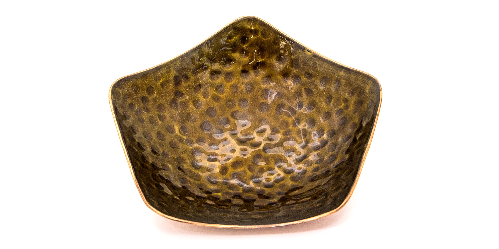 קערית ישנה עשויה נחושת מצופה אמייל, קוטר: 17 ס"מ.
