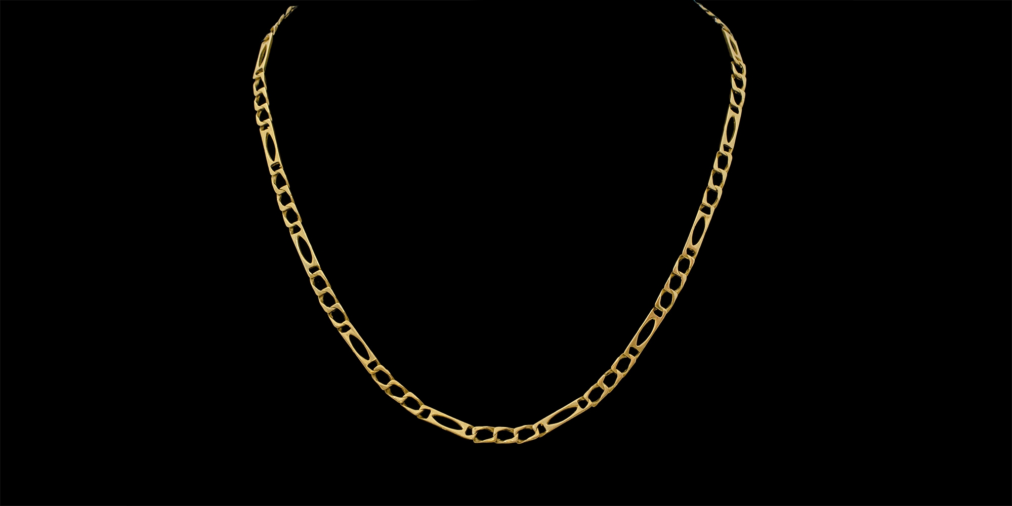 שרשרת עשויה זהב צהוב 14 קראט, מעוצב בחוליות, משקל: 18.34 גרם.