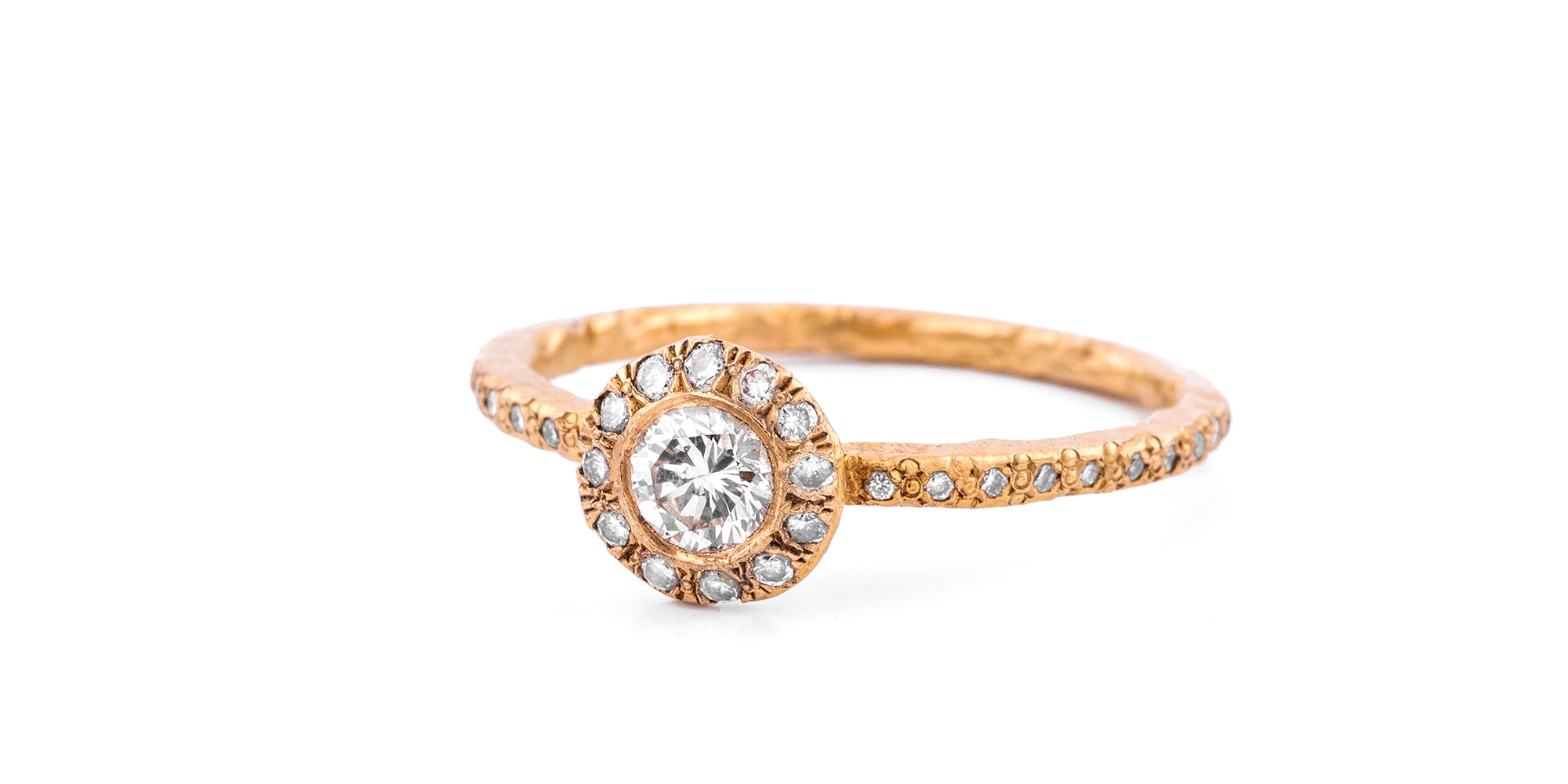 טבעת מעוצבת עשויה זהב צהוב 18 קארט בעבודת יד, משובצת יהלומים, היהלום המרכזי במשקל של כ: 40 נקודות.