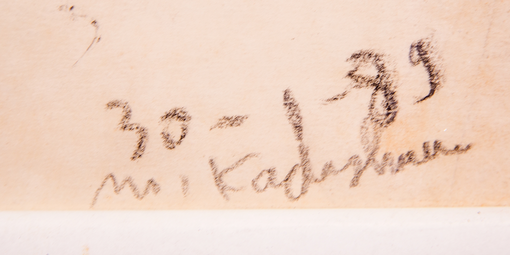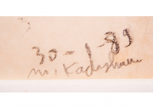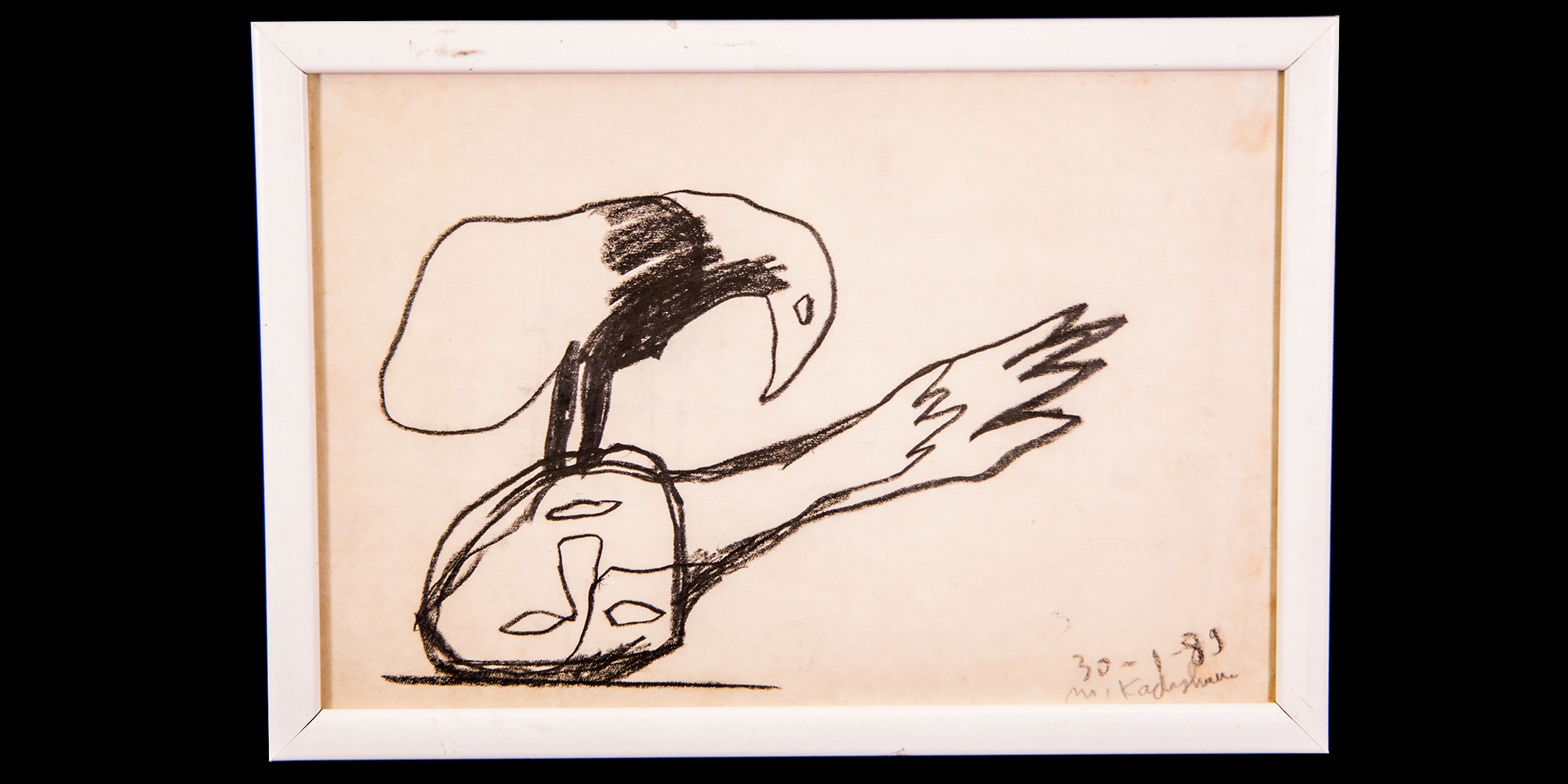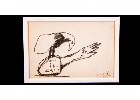 מנשה קדישמן - 'ציפור אוכלת', פחם על נייר, חתום ומתוארך 1989, מידות: 45X30 ס"מ.