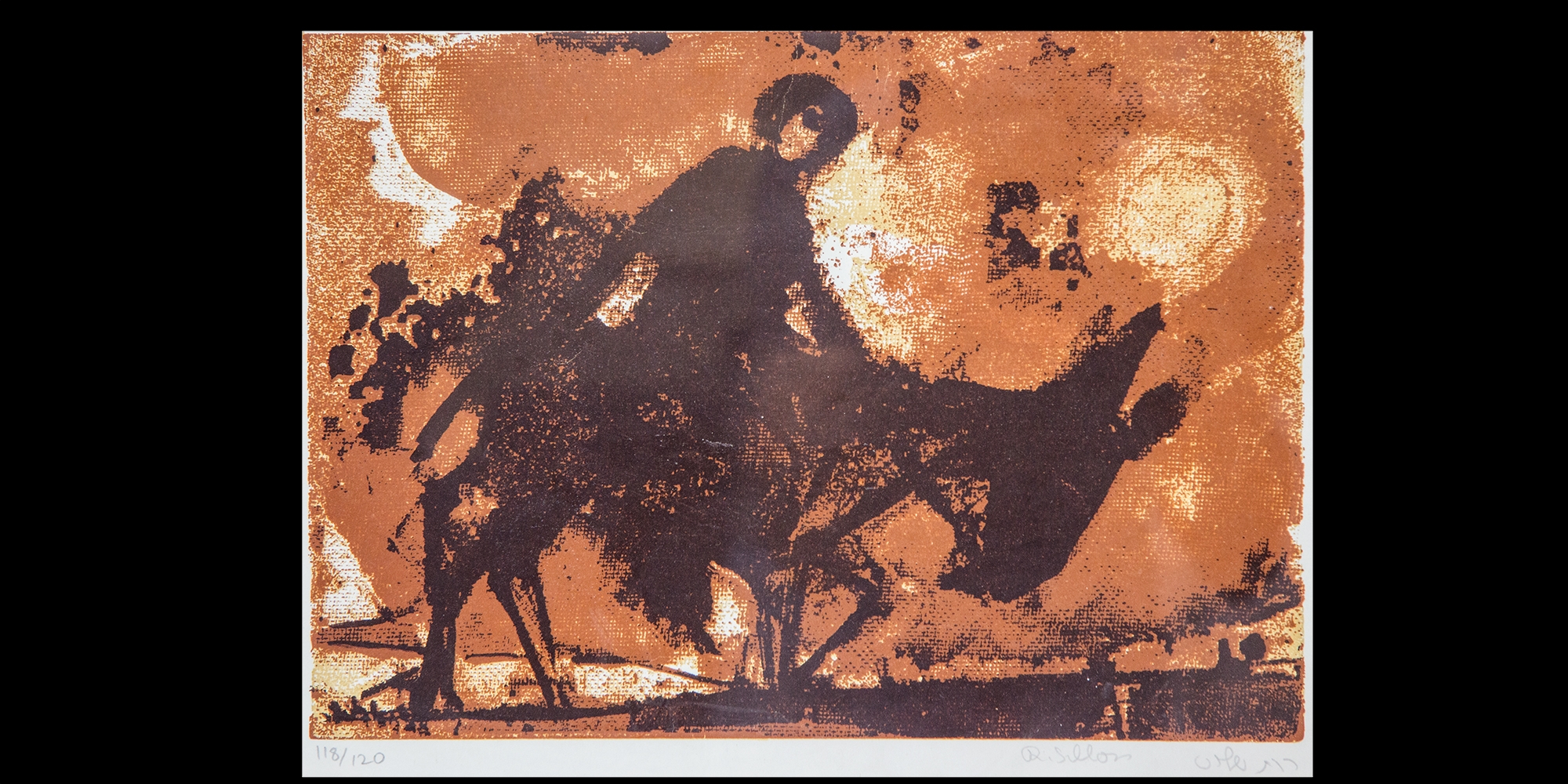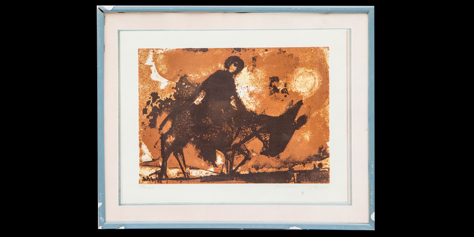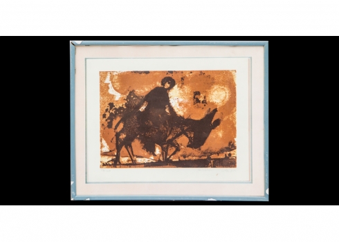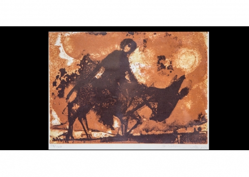 רות שלוס - 'רוכב על סוס', ליטוגרפיה חתומה וממוספרת - 118/120, מידות: 31X41 ס"מ.
