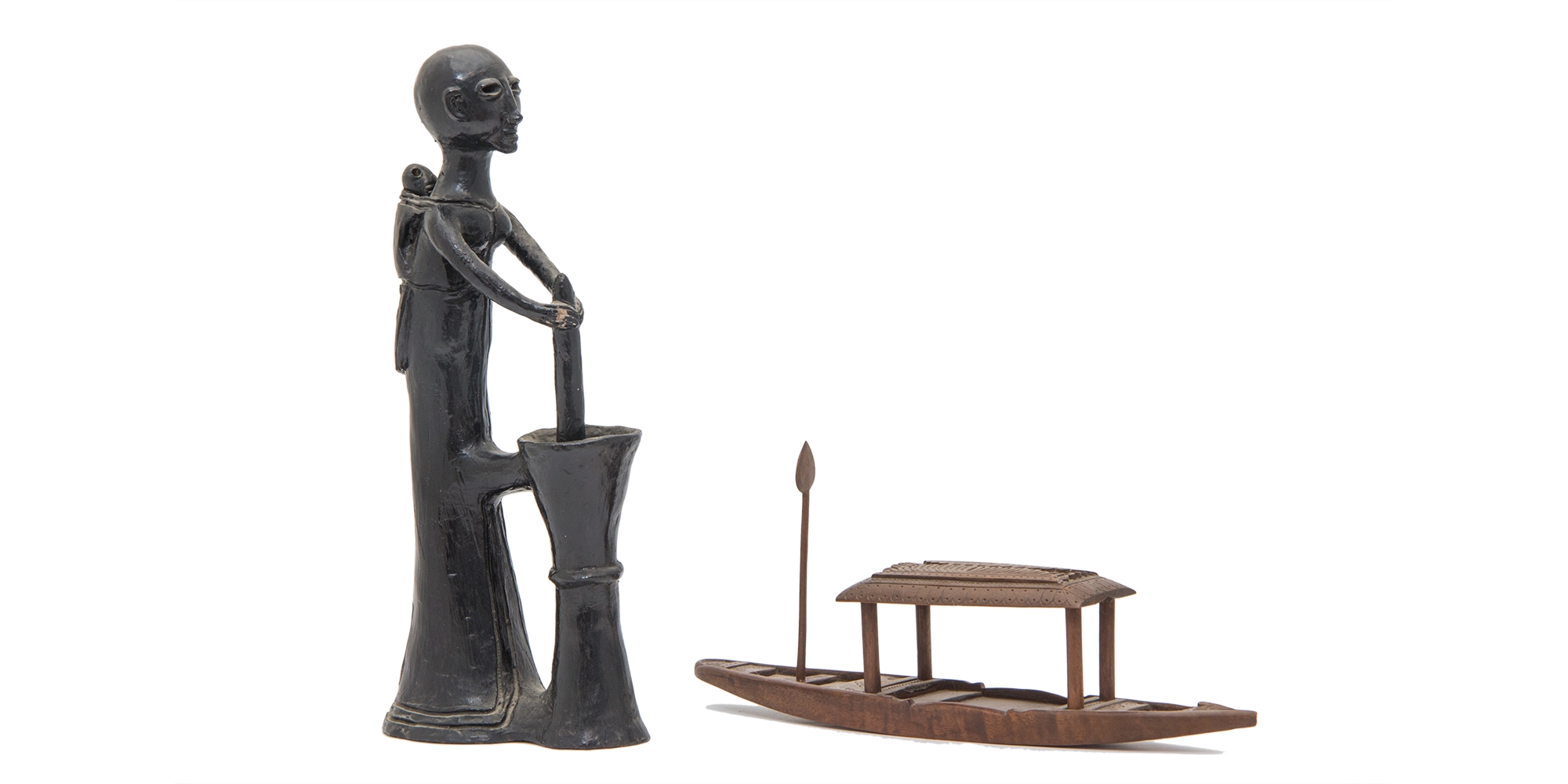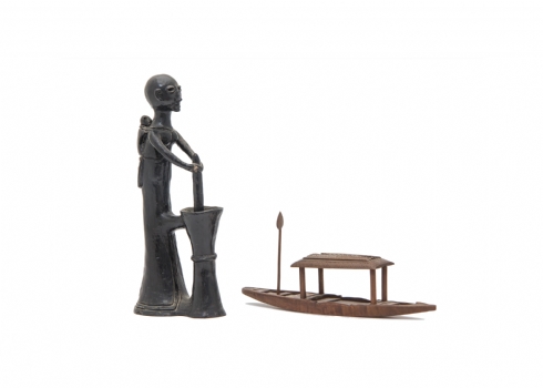 זוג קישוטים ישנים עשויים אבן ועץ (X2)