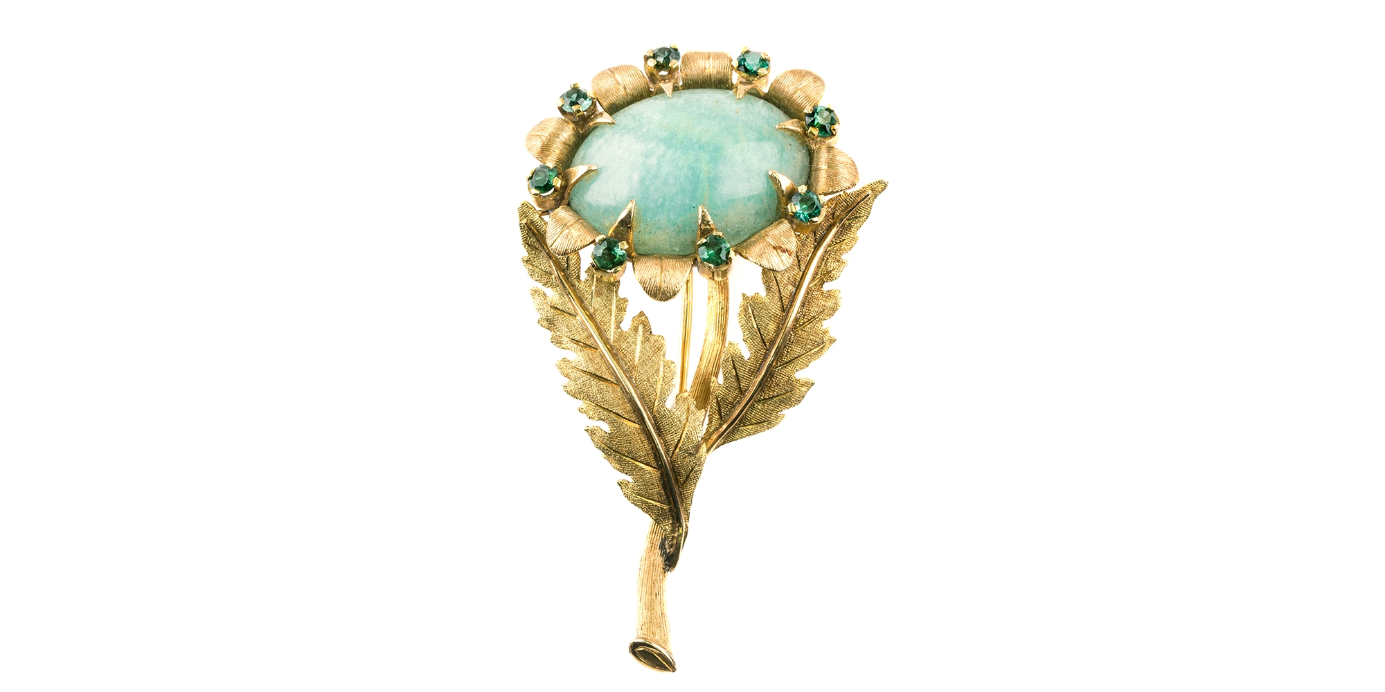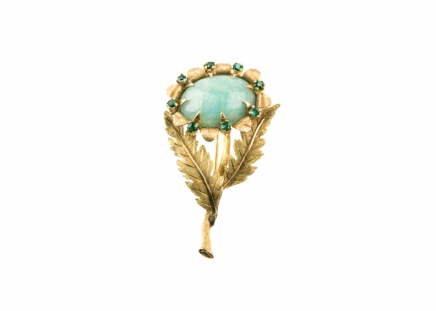 מספר הפריט בקטלוג 200סיכה ישנה מתקופת הרטרו, עשויה זהב צהוב 18 קארט, משקל כולל: 23.06 גרם, משובצת ג'ייד ואבני טורמאלין.