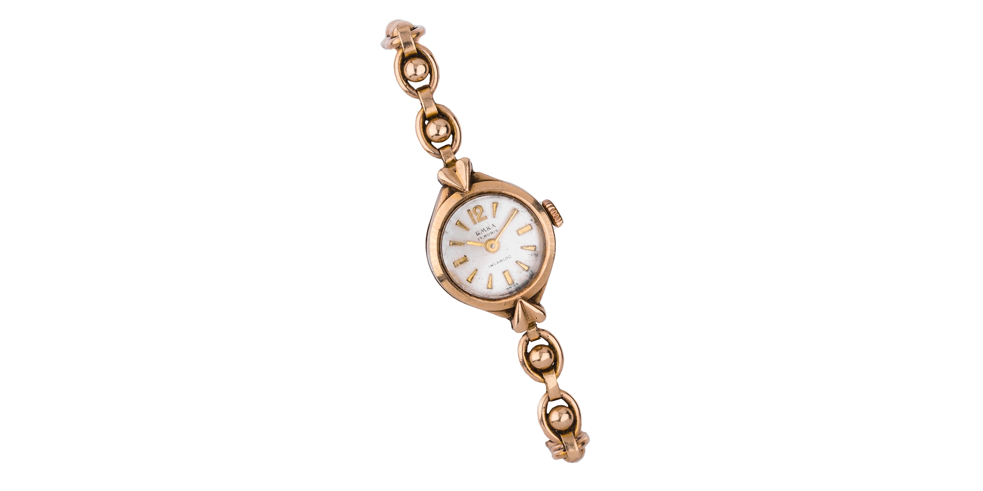שעון יד ישן לאישה עשוי זהב 9 קארט, חתום, ישנם חוליות נוספות.