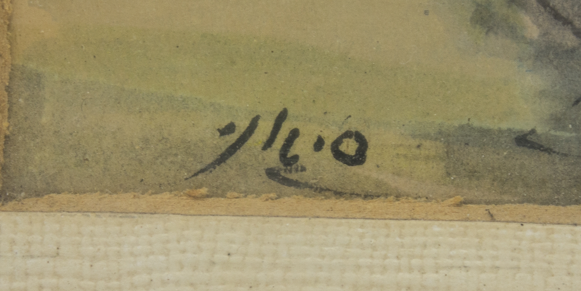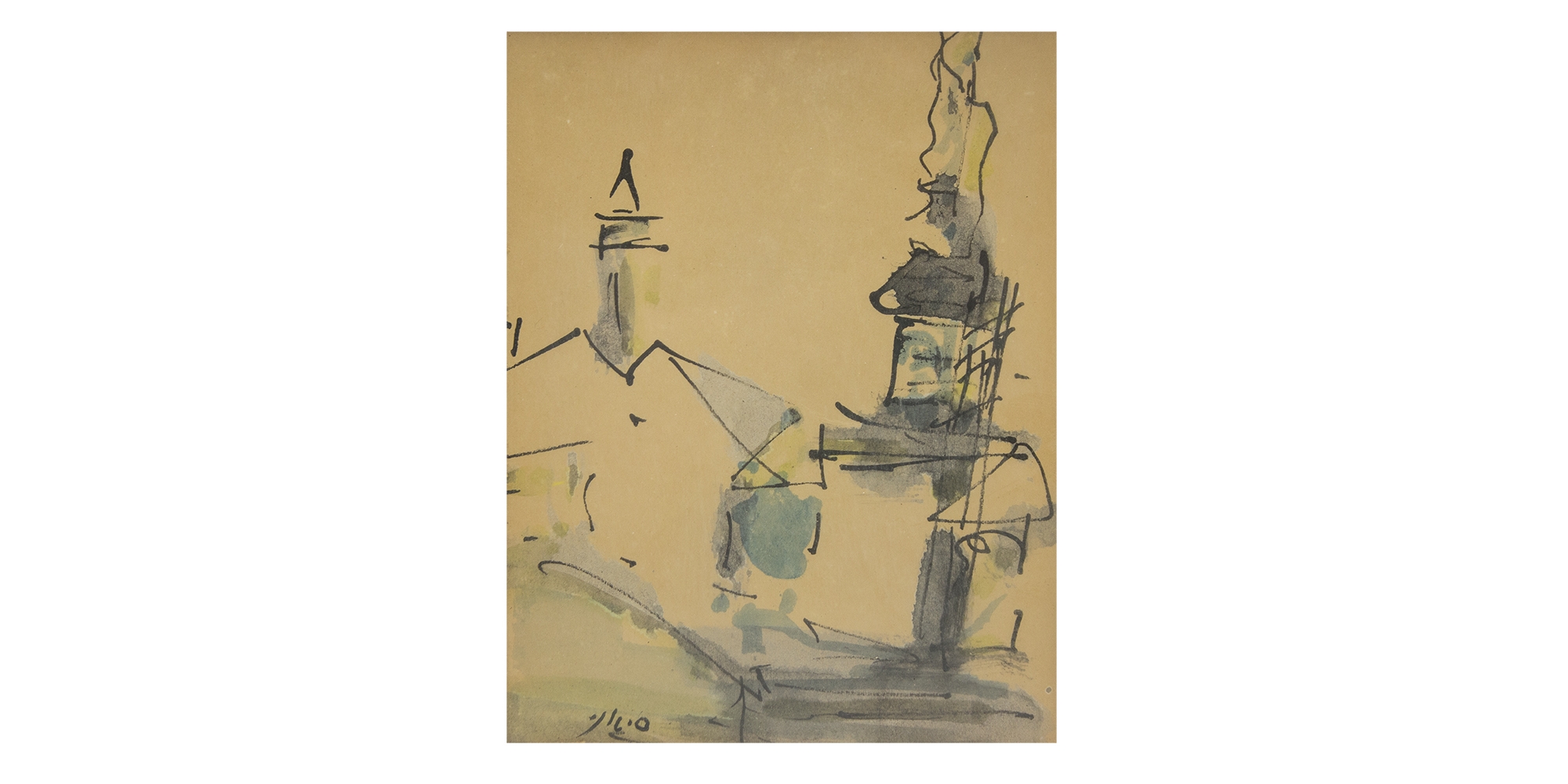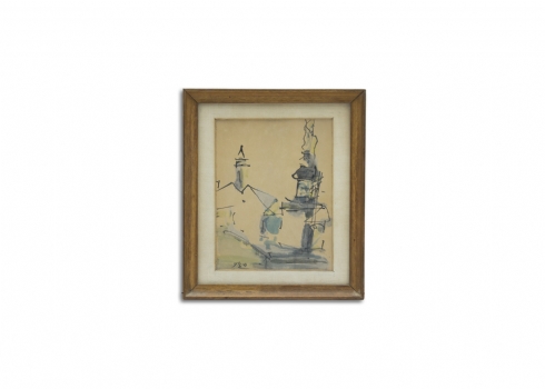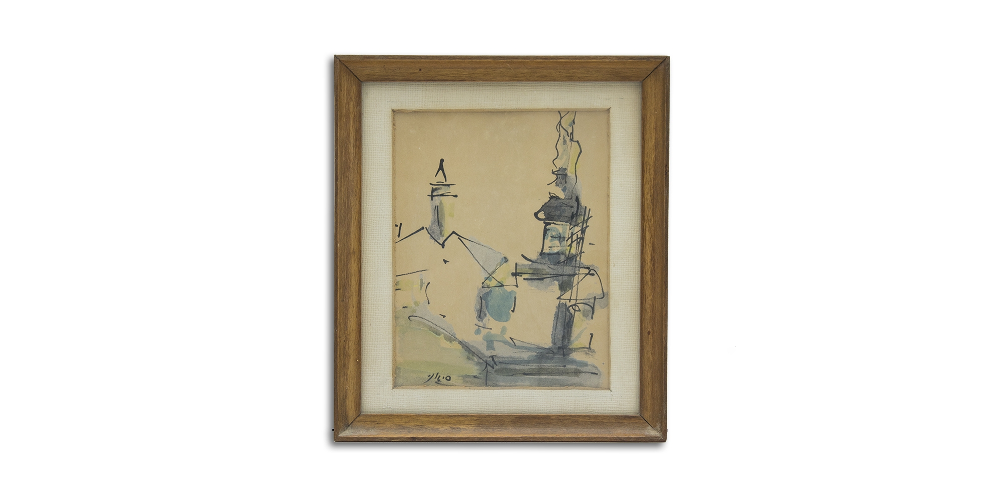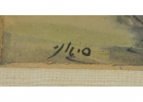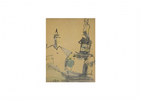 מספר הפריט בקטלוג 81'נוף בתים' - רישום אקוורל ודיו על נייר, חתום: סיאני, מידות: 16X12 ס"מ.