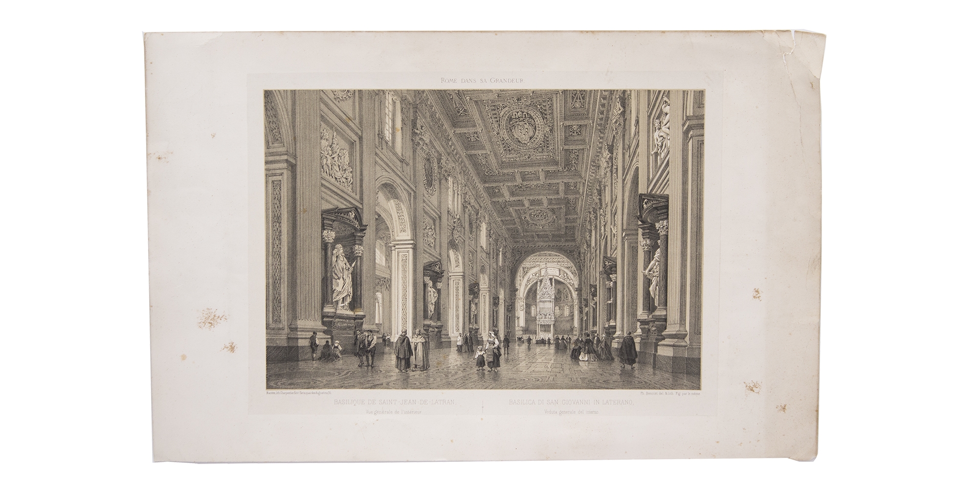 תצריב צרפתי עתיק (לא ממוסגר), פגמים וקרע, מידות:36X55 ס"מ.