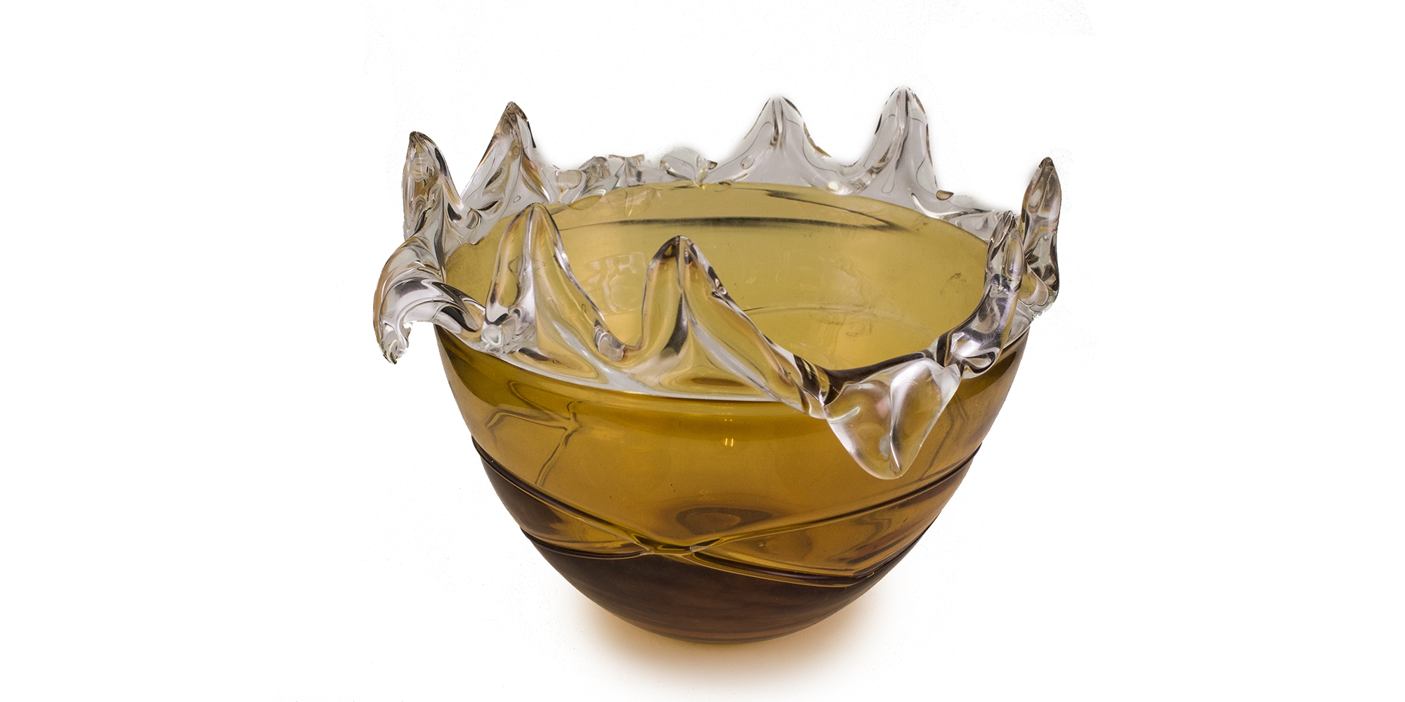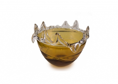 קערת זכוכית, עשויה בעבודת ניפוח יד אמן, רוחב: 27 ס"מ.