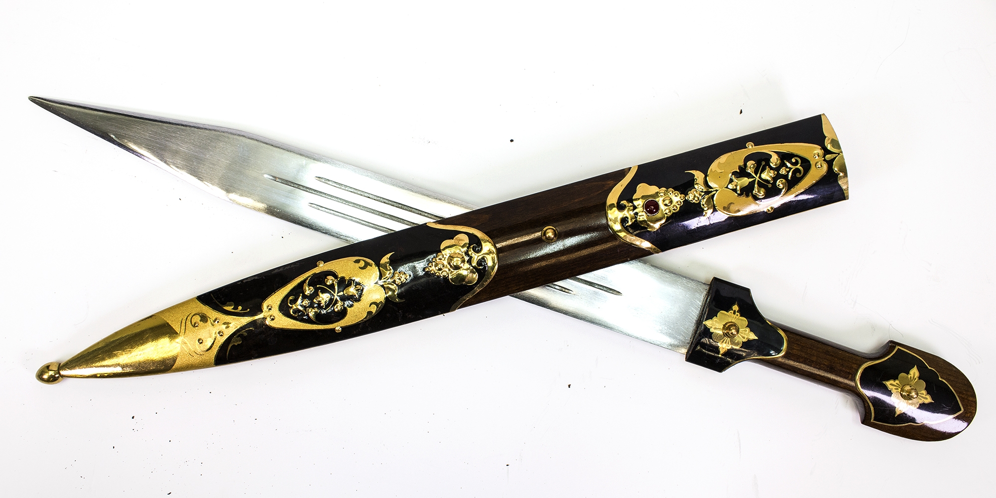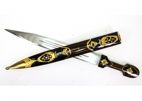 פגיון גאורגי ישן, עשוי מתכת, נדן עשוי עץ עם התקני פליז, אורך: 57 ס"מ.