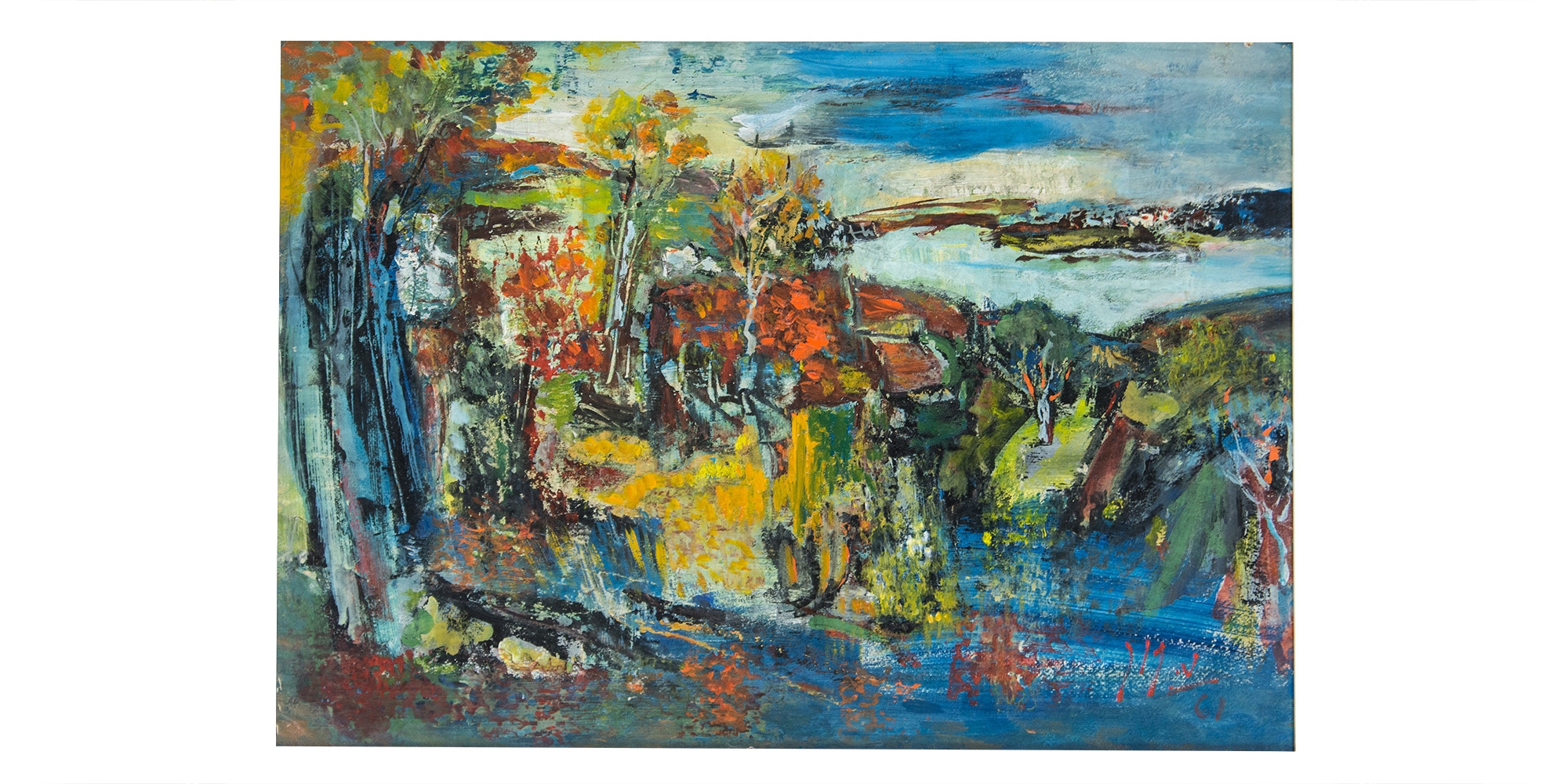 'נוף', שמן על לוח, חתום, פגם, מידות: 40X54 ס"מ.