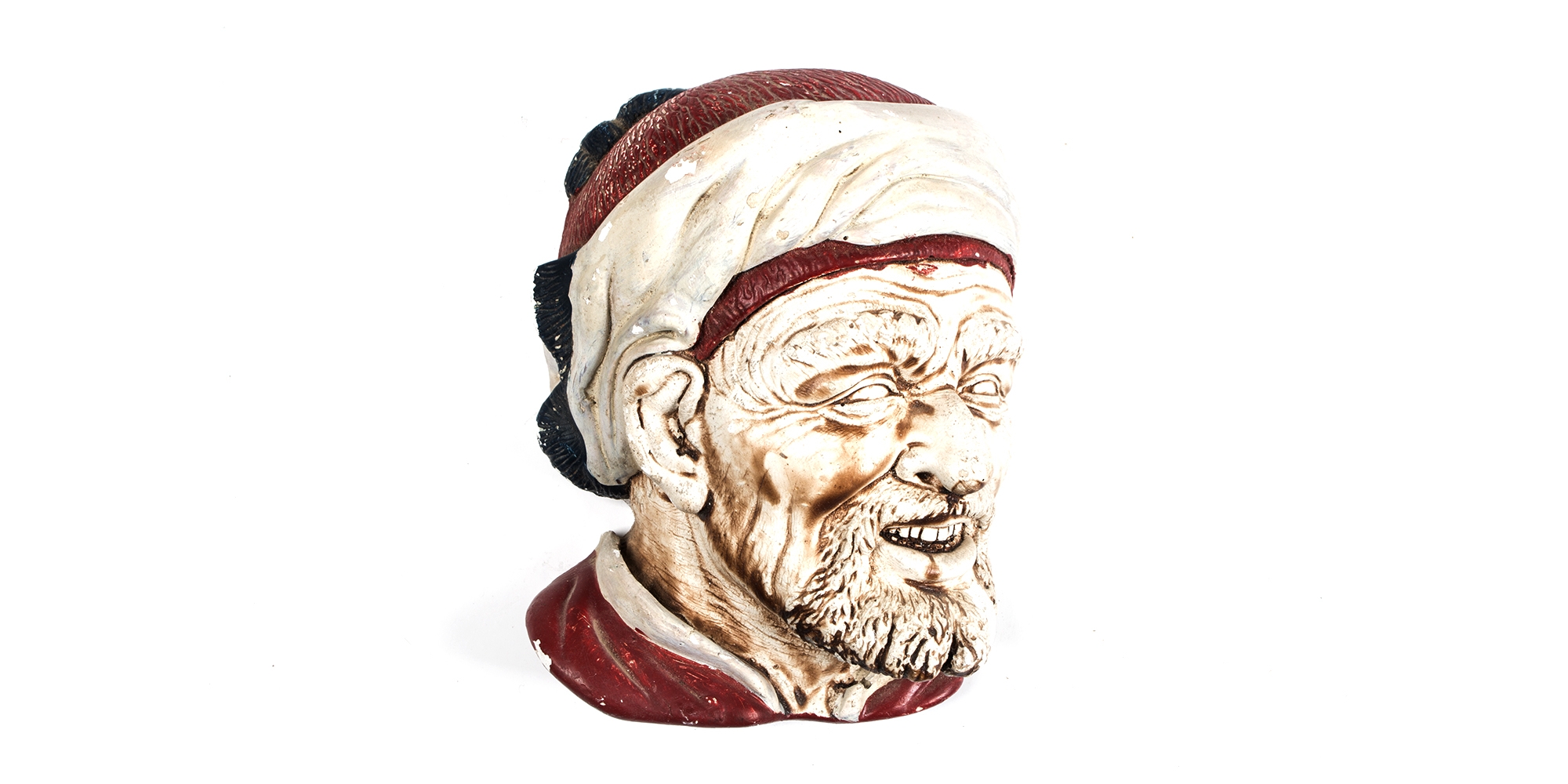 מסיכת קיר ישנה, עשויה גבס צסוע, פגם, גובה: 14 ס"מ.