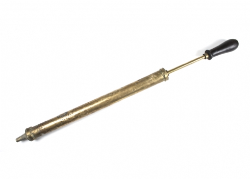 משאבת אופניים הולנדית ישנה, עשויה מתכת וידית עץ, אורך: 65 ס"מ.