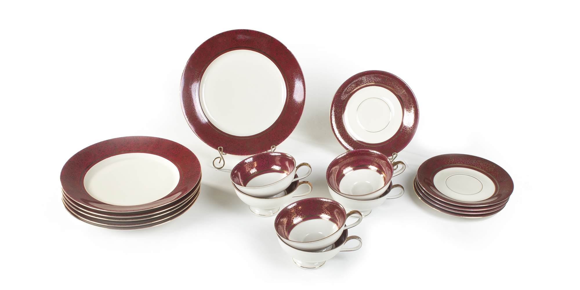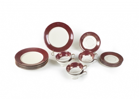 חלקי סט אוכל גרמני ישן עשו קרמיקה, מעוטרים, חתומים, קוטר: 22 ס"מ.