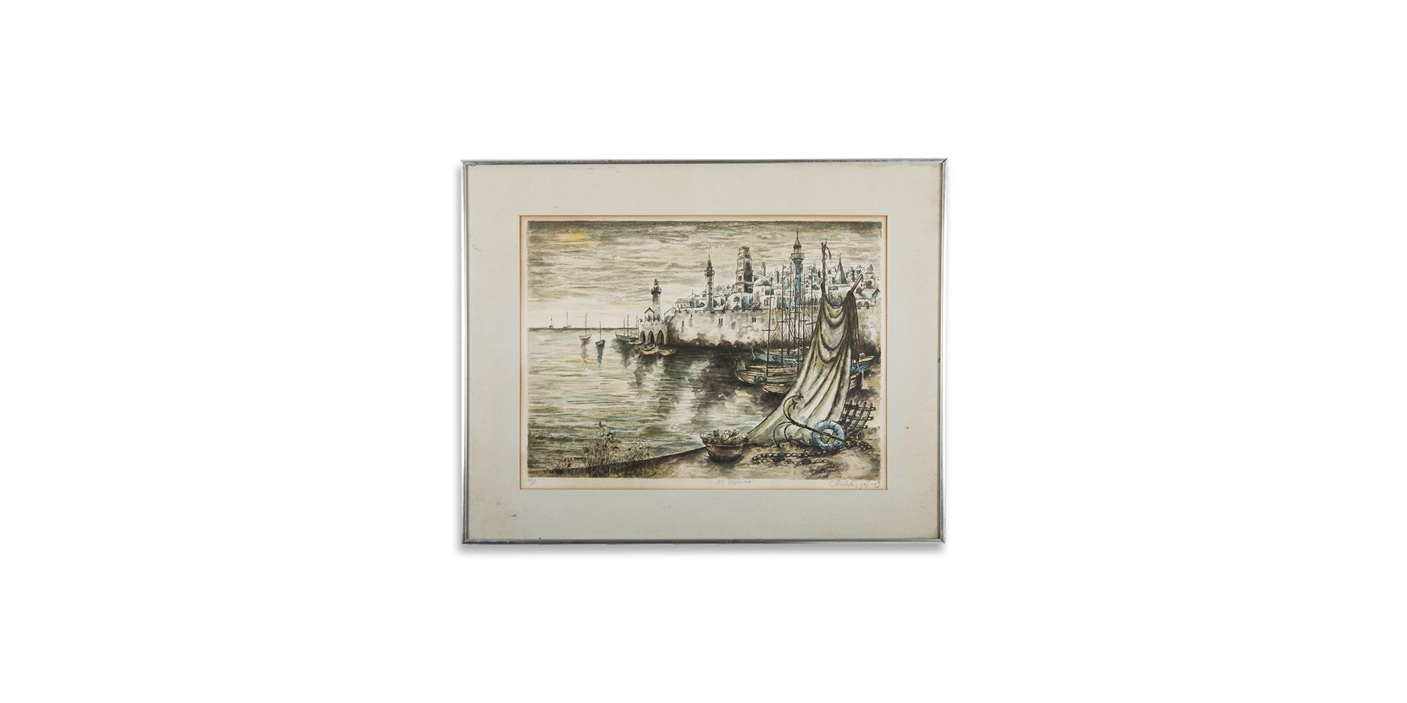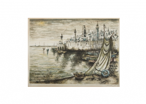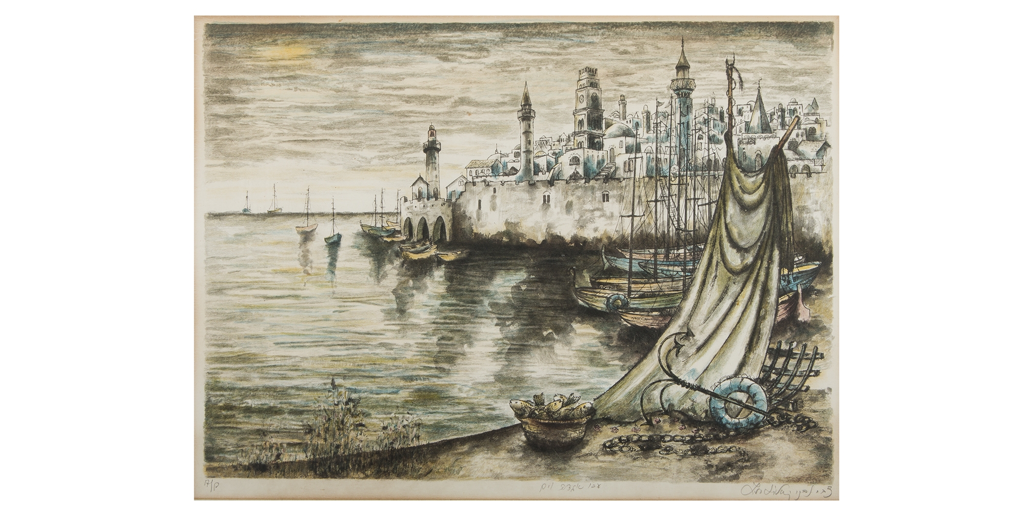 צבי לבני - 'עכו אגדה וים', ליטוגרפיה חתומה בעיפרון על ידי אמן: 41X55 ס"מ.