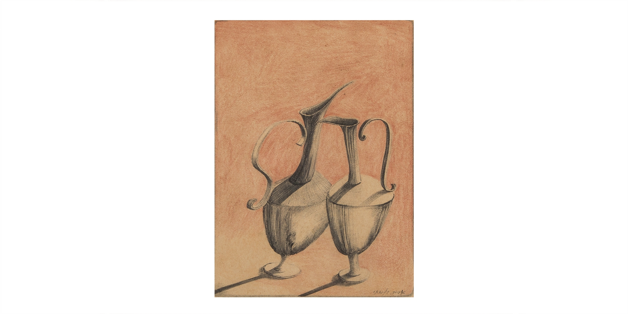 מספר הפריט בקטלוג 14אריה קמחי - 'זוג כדים', רישום על נייר, חתום, מידות: 28X21 ס"מ.