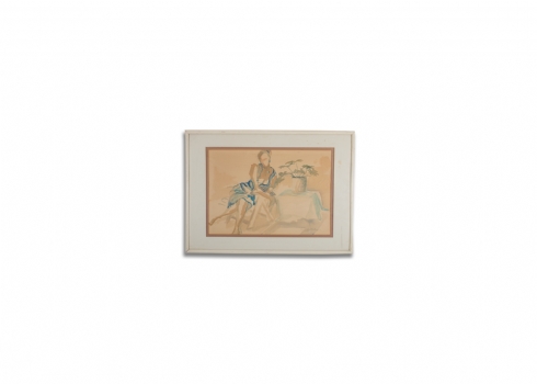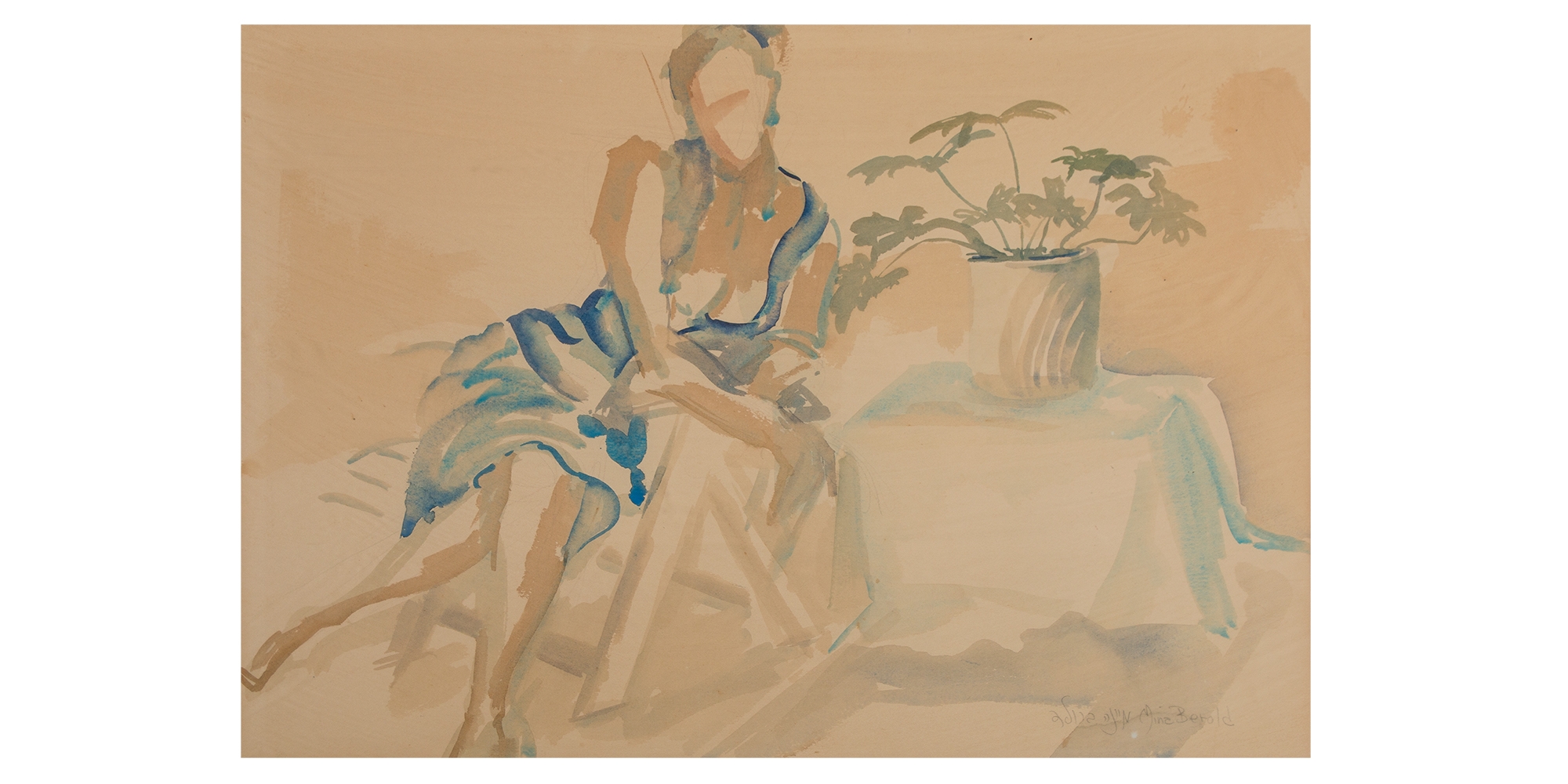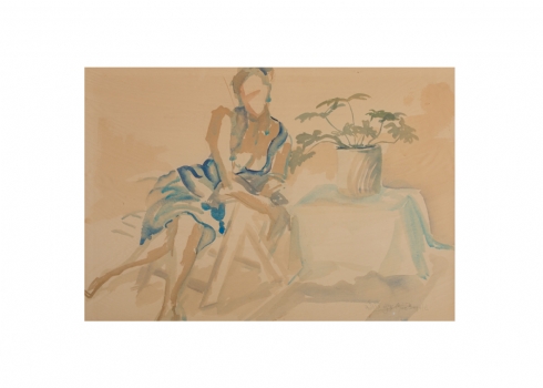 מספר הפריט בקטלוג 39מיינה ברולד - 'אישה ועציץ' - אקוורל על נייר, חתום, מידות: 40X56 ס"מ.