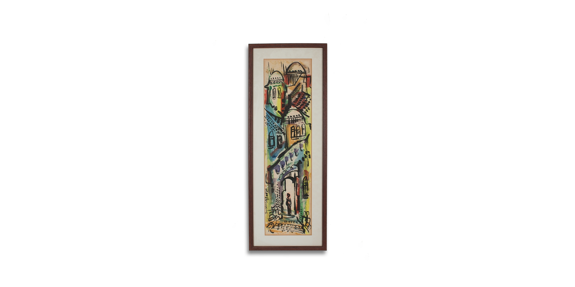 משה טוצ'מסקי - 'נוף', גואש על נייר, חתום, מידות: 50X13 ס"מ.