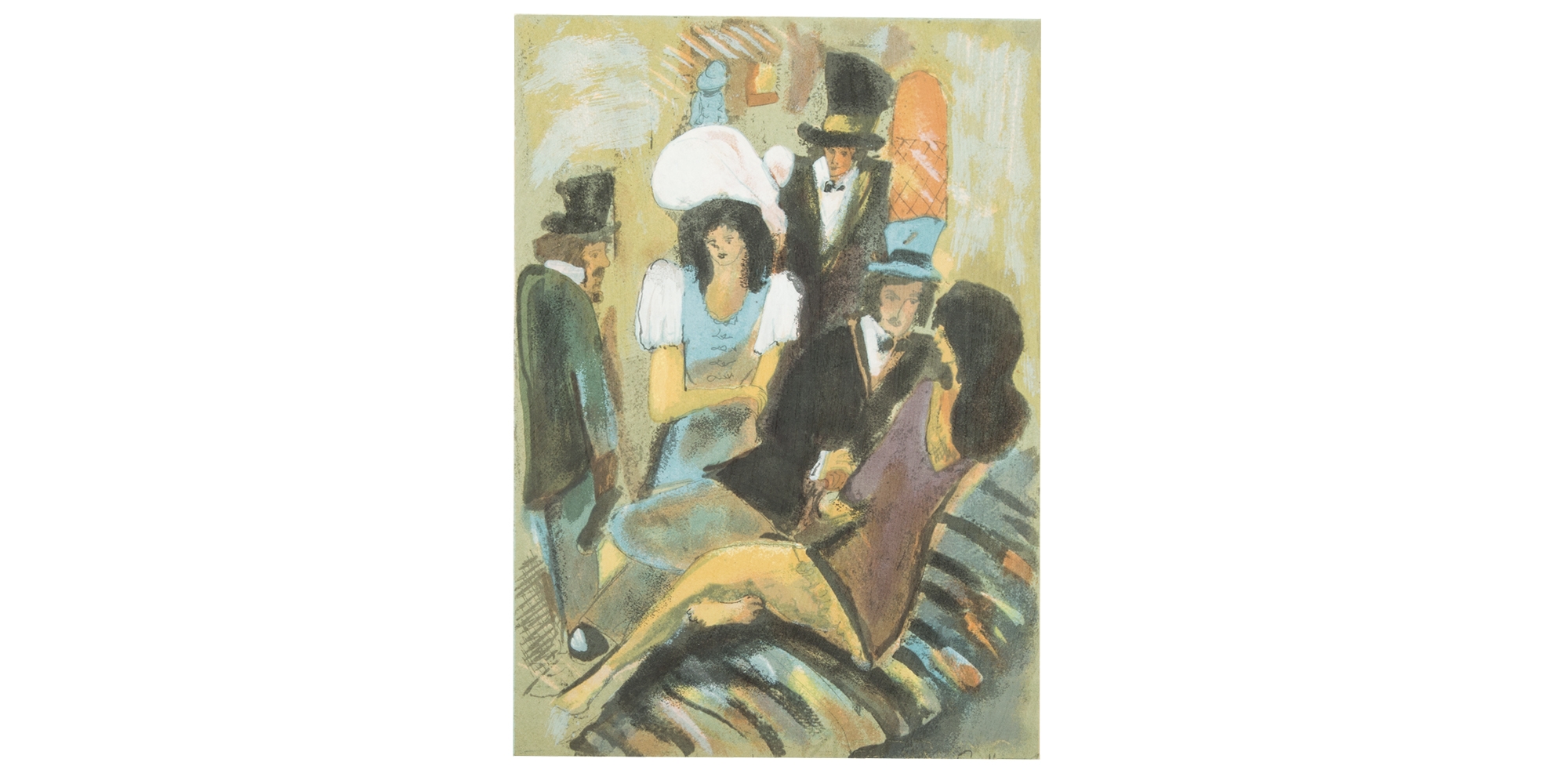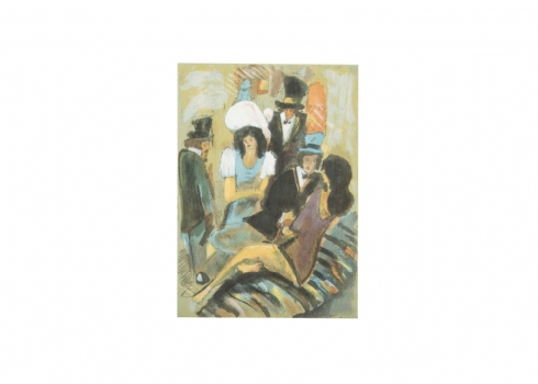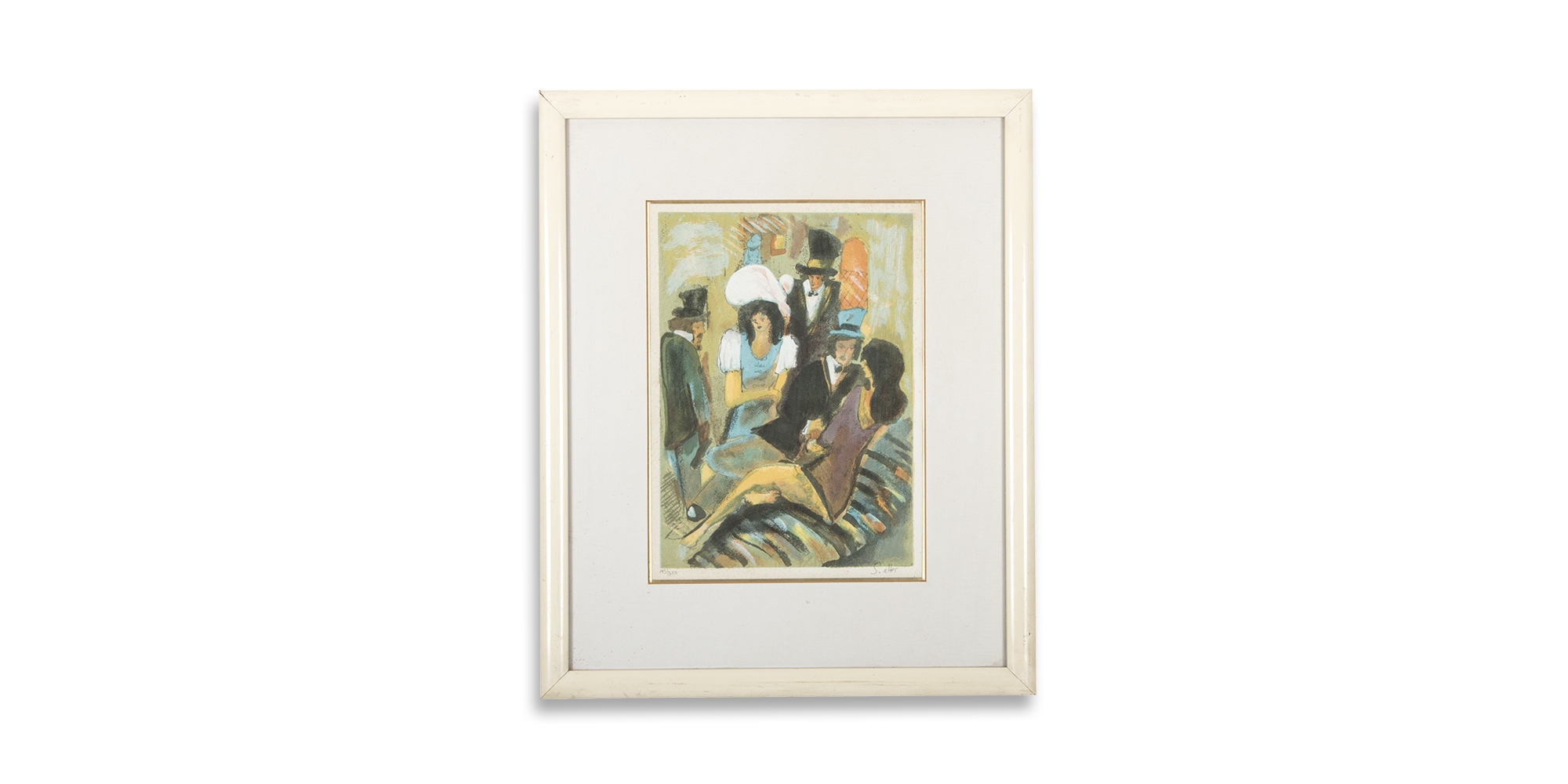 מספר הפריט בקטלוג 198שלמה אלטר - 'מסיבת מגבעות' - ליטוגרפיה חתומה וממוספרת. מידות: 32X22 ס"מ.