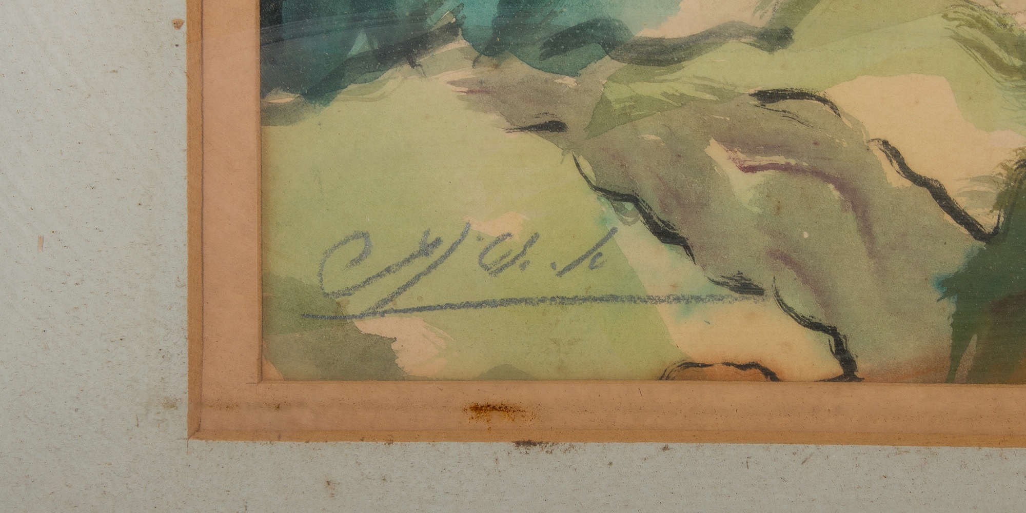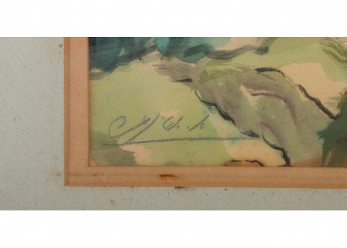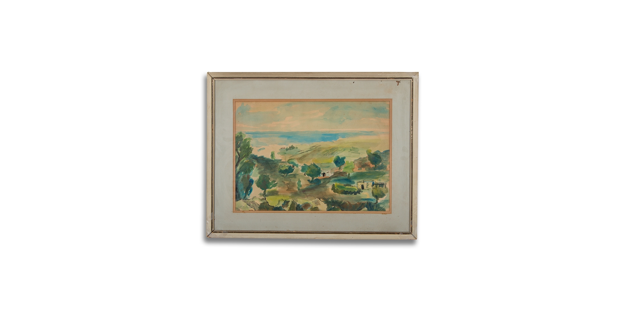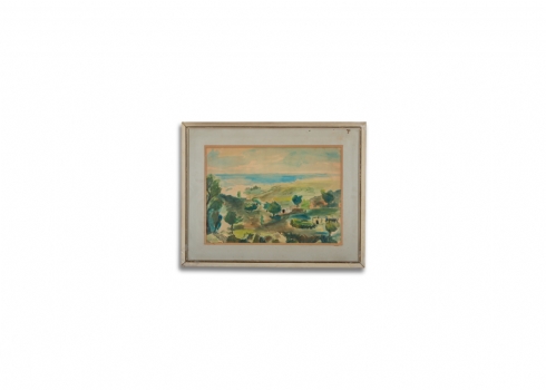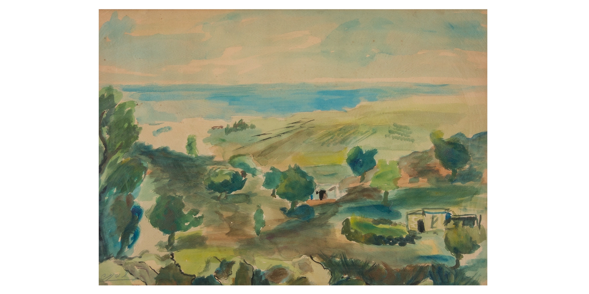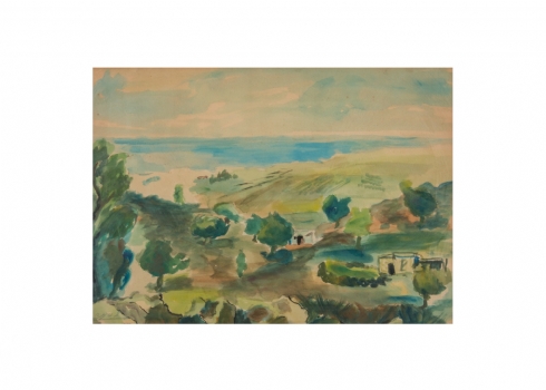 מספר הפריט בקטלוג 186אליעזר דב אטינגר - 'נוף כינרת', אקוורל על נייר, חתום, מידות: 40X57 ס"מ.